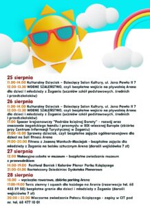 W piątek zapraszamy wszystkich mieszkańców na 11.00-14.00 Kulturalny Dzieciak – Dziecięcy Salon Kultury, ul. Jana Pawła II 7 (więcej informacji pod nr tel. 602721395) 12.00-13.30 WODNE SZALEŃSTWO, czyli bezpłatne wejście na pływalnię Arena dla dzieci i młodzieży z Żagania (uczniów szkół podstawowych, średnich i przedszkolaków), limit wejść - 40 osób 17.00 Spacer krajoznawczy „Podróże księżnej […]