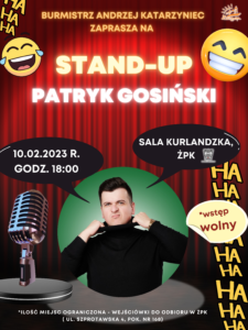 W piątek 10 lutego o godz. 18:00 w ramach trwających ferii  zapraszamy Was na stand up. Za mikrofonem w sali Kurlandzkiej Żagańskiego Pałacu stanie Patryk Gosiński, czyli gapa, hipochondryk i grubas w jednym. Zwycięzca konkursu na II Gali Stand-upu w Mrągowie 2021. Mogliście go zobaczyć jako support trasy Please Stand-up, na antenie Comedy Central lub […]