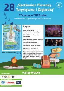 W sobotę 17 czerwca 2023 roku zapraszamy na podzamcze Żagańskiego Pałacu Kultury na Spotkanie z Piosenką Turystyczną i Żeglarską. 28 raz Żagań zaprasza miłośników piosenki żeglarskiej i turystycznej do wspólnej zabawy. Wstęp wolny 15.00 Konkurs na piosenkę 18.45 Ogłoszenie wyników 19.00 Koncert Laureatów 19.30 Koncert Grupy na Swoim 21.00 Koncert Flash Creep Wydarzenie jest w […]