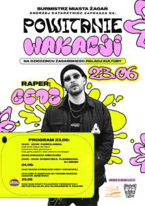 23 czerwca 2023r. dla najmłodszych w godz. 14:00-20:00 czeka szereg atrakcji na Podzamczu Żagańskiego Pałacu Kultury. Na scenie o godz. 20:00 wystąpi gwiazda rapu GEDZ. Gedz, właściwie Jakub Gendźwiłł polski raper, wokalista i producent muzyczny. Pierwsze solowe wydawnictwo rapera zatytułowane Ręka na pulsie ukazało się w 2012 roku. Gedz szerzej zaistniał rok później za sprawą […]