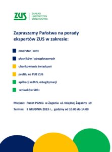 Zapraszamy na grudniowe porady ekspertów ZUS w punkcie przesiadkowym przy ulicy Żaganny 19.