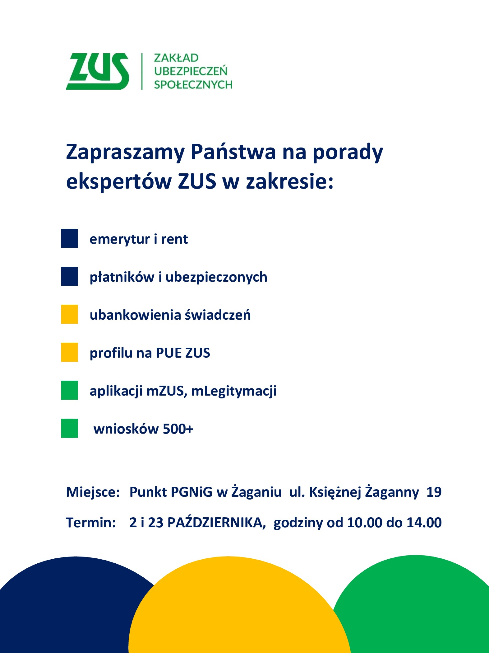 Dyżur ekspertów ZUS w Żaganiu