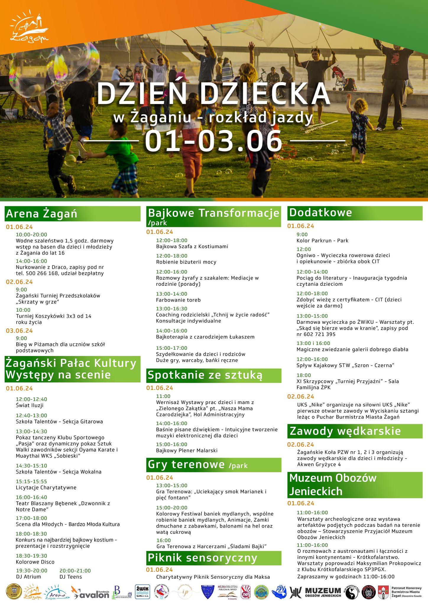 Miejskie instytucje przygotowały szereg atrakcji i wydarzeń, nad którymi patronat honorowy objął Burmistrz Miasta Żagań Sławomir Kowal. Serdecznie zapraszamy do rodzinnego korzystania z miejskiej oferty w dniach 1-3 czerwca!