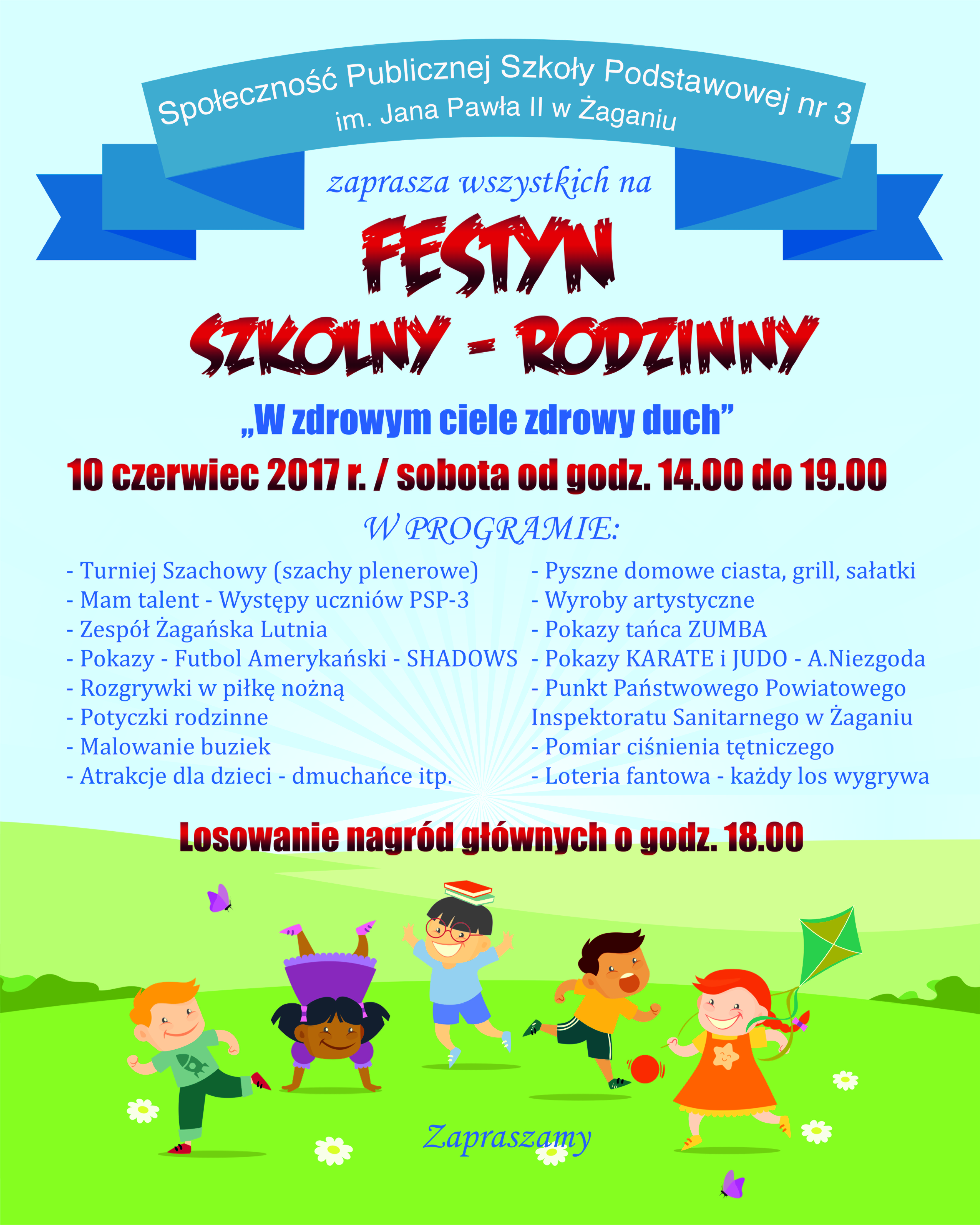 10 czerwca zapraszamy na festyn szkolny w PSP nr 3 w Żaganiu. Szczegółowy plan przygotowanych atrakcji znajdą Państwo na plakacie.