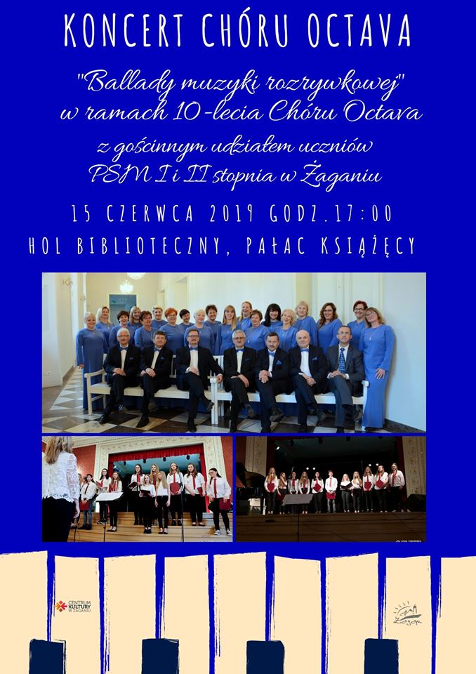 Żagański Chór Octava, sekcja Szkoły Talentów Centrum Kultury w Żaganiu przygotował dla swoich słuchaczy drugi wiosenny koncert podsumowujący pracę w sezonie. Koncert ten będzie wyjątkowy, bo jest wstępem do obchodów Jubileuszu 10-lecia Chóru pod dyrekcją Moniki Maszkowskiej. Będzie wyjątkowy, choć tradycyjnie we współpracy z uczniami PSM I i II stopnia w Żaganiu.