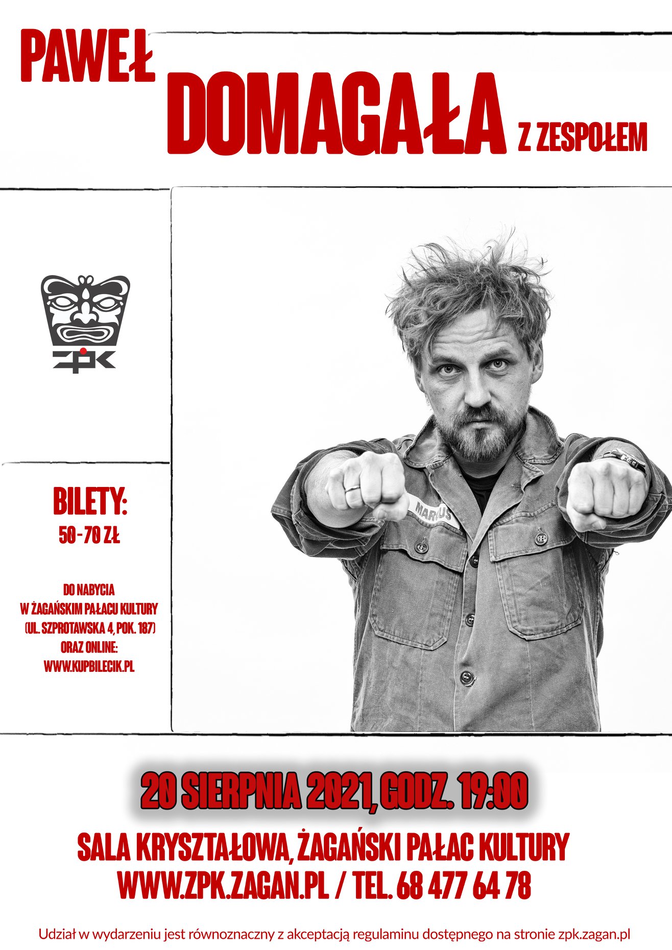 Gra w filmie i teatrze, koncertuje, wydaje płyty, pisze piosenko i monologi kabaretowe, podkłada głos w filmach animowanych. Nie rozstaje się z gitarą, stara się równocześnie być radykalnie pokorny i radykalnie pewny siebie. Pawła Domagałę można kojarzyć z takich filmów jak „80 milionów”, „Planeta Singli” czy „Wkręceni”, a w ostatnim czasie również z dokonań muzycznych. Na swoim koncie ma już trzy albumy studyjne – wydany w 2016 roku „Opowiem Ci o mnie”, lata później „1984” i w ostatnim roku – album „Wracaj”. Singiel promujący drugą płytę artysty – „Weź nie pytaj” – szybko stał się radiowym hitem, czego dowodem jest przyznana mu statuetka Przeboju Roku 2018 RMF FM oraz ponad 130 milionów wyświetleń na YouTube. Ostatnia płyta, „Wracaj”, z której pochodzą piosenki „Popatrz na mnie”, czy „Ja tak umiem”, z powodu pandemii nie doczekała się jeszcze promocyjnej trasy koncertowej. W związku z tym, w czerwcu 2021 artysta rusza w dużą, letnią trasę koncertową, na której piosenki z ostatniego albumu zabrzmią wreszcie na żywo. Na koncertach, które cieszą się ogromnym zainteresowaniem fanów, nie zabraknie na pewno tych największych przebojów artysty.