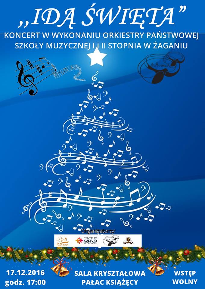17 grudnia w sobotę o godz. 17:00 w Sali Kryształowej Pałacu Książęcego wystąpi orkiestra Państwowej Szkoły Muzycznej I i II stopnia z Żagania pod dyrekcją Iwana Moroza.
