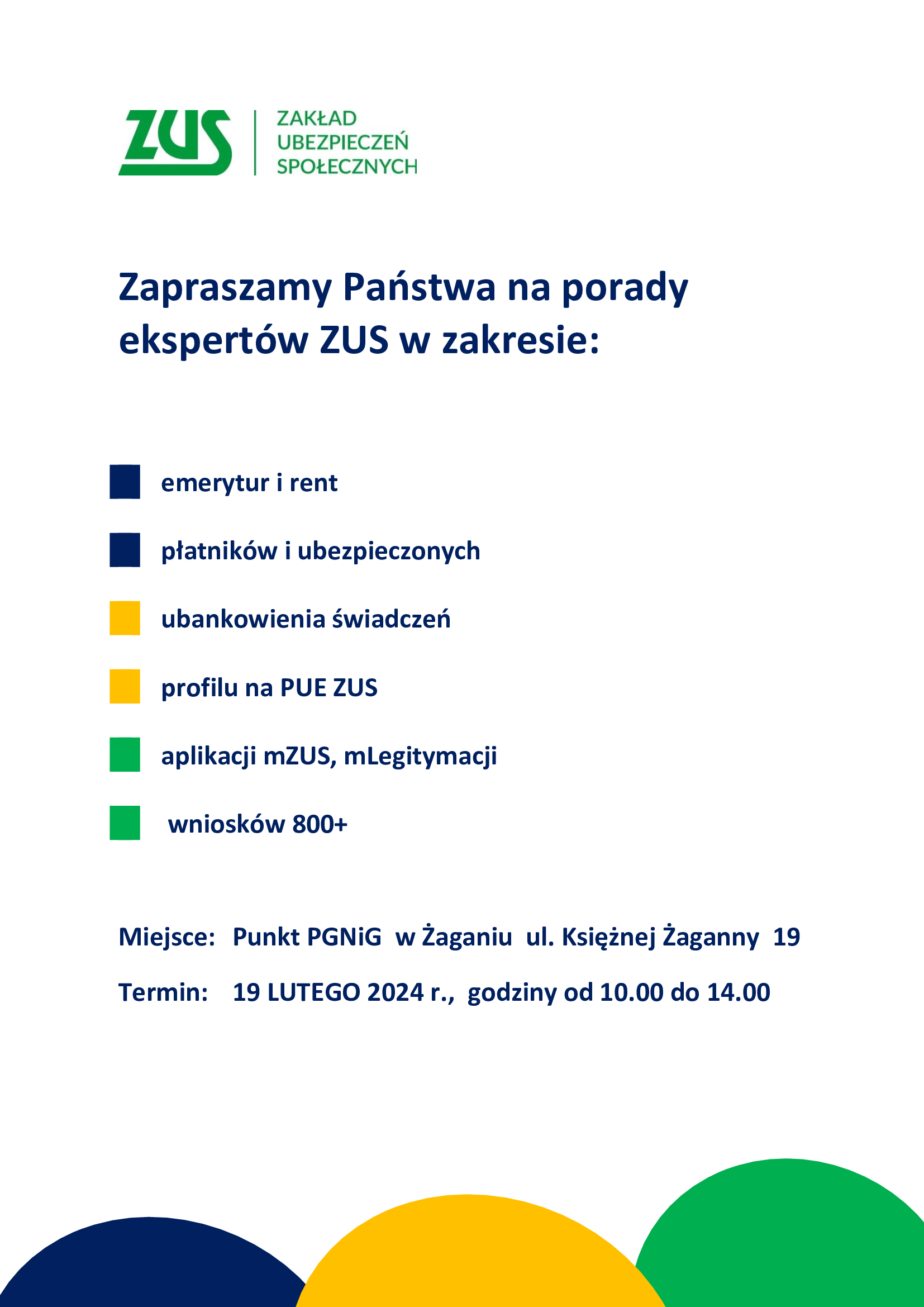 Porady ekspertów ZUS w Żaganiu