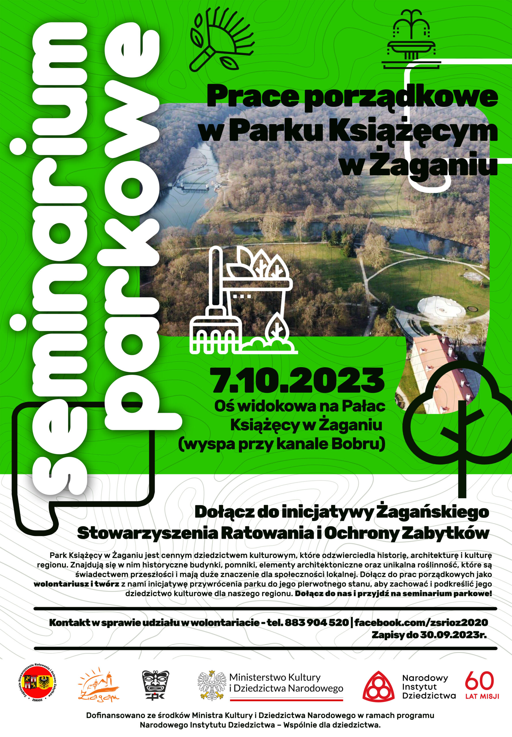 Żagańskie Stowarzyszenie Ratowania i Ochrony Zabytków pozyskało fundusze na realizację kolejnego Seminarium Parkowego w Żaganiu, na które zapraszamy do parku pałacowego 7 października.