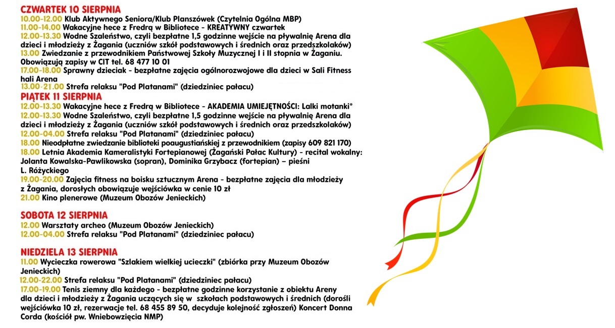18.00 Letnia Akademia Kameralistyki Fortepianowej (Żagański Pałac Kultury) – recital wokalny: Jolanta Kowalska-Pawlikowska (sopran), Dominika Grzybacz (fortepian) – pieśni L. Różyckiego
