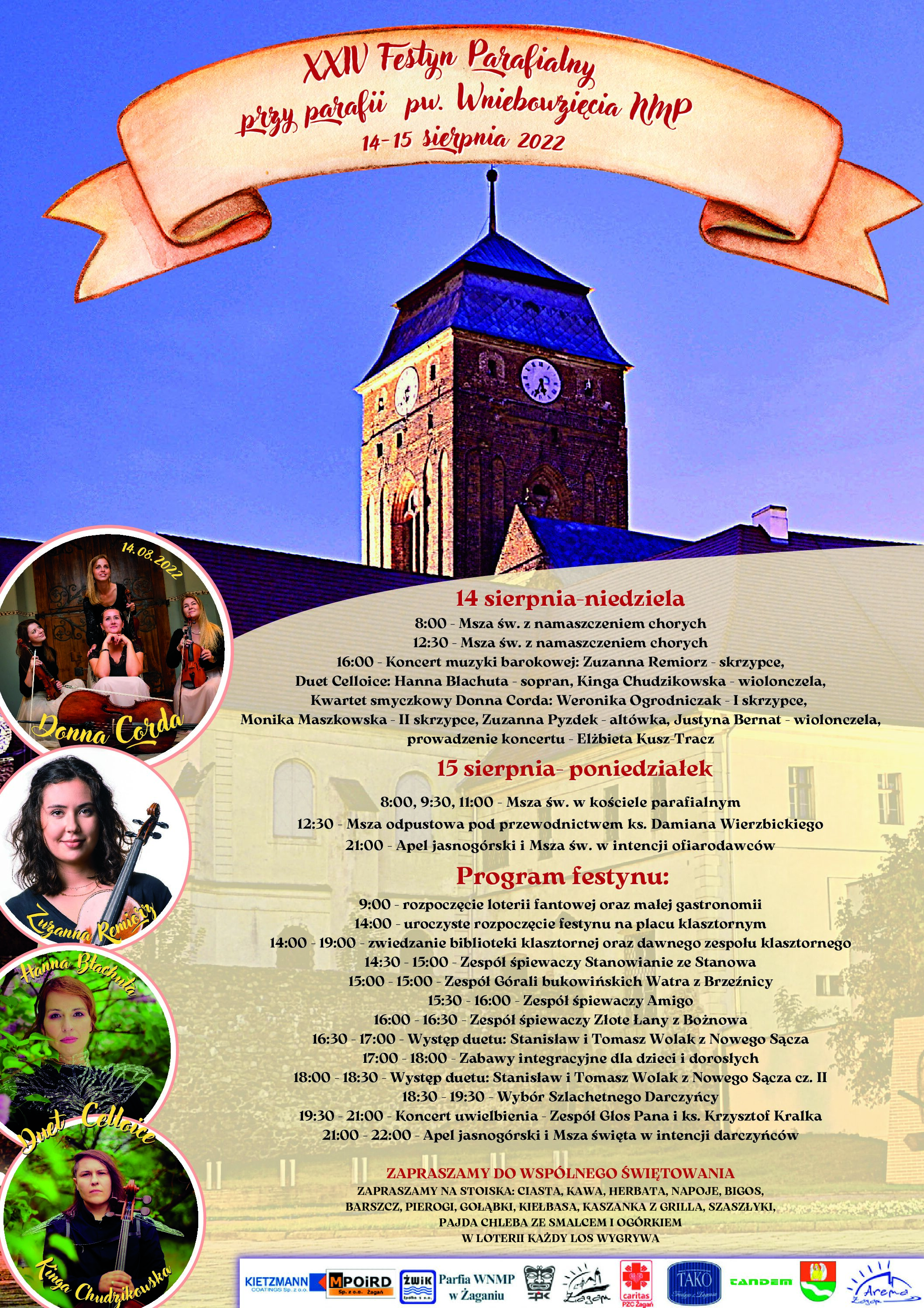 Zapraszamy wszystkich mieszkańców na XXIV Festyn Parafialny przy parafii pw. Wniebowzięcia NMP, który odbędzie się 14-15 sierpnia 2022 roku.