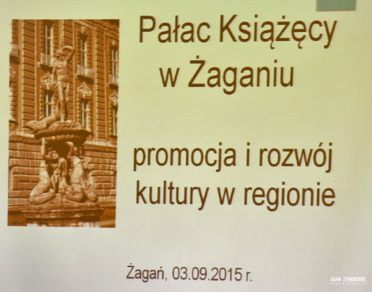 3 września 2015 roku w sali konferencyjnej Pałacu Książęcego odbyło się posiedzenie Komisji Kultury, Edukacji, Sportu i Turystyki Sejmiku Województwa Lubuskiego, w którym wzięła udział również Lubuska Kurator Oświaty Bogna Ferensztajn. Spotkanie rozpoczął Przewodniczący Komisji Tadeusz Jędrzejczak, który podkreślił, iż komisja obraduje w Żaganiu, gdyż wszyscy jej członkowie chcieli poznać obiekt, który jest perłą ziem zachodnich. Burmistrz Daniel Marchewka podziękował za ten wybór i zaprosił do częstszych odwiedzin w naszym mieście. “Pałac Książęcy jest dobrem mieszkańców ziemi lubuskiej, zatem wszystkich serdecznie zapraszamy do jego poznania’ – podsumował burmistrz.