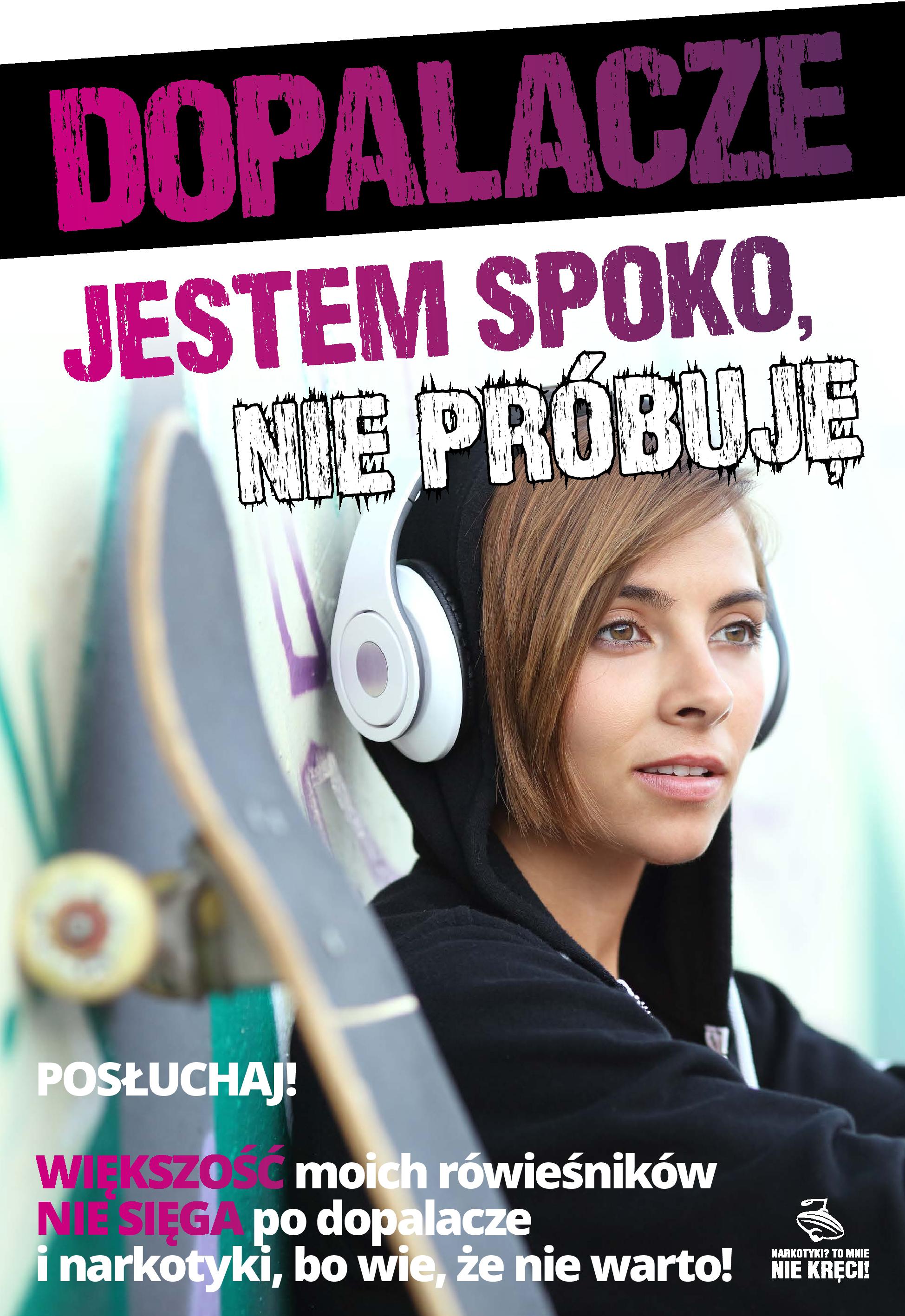 - Młodzież gimnazjalna/ponadgimnazjalna – działania profilaktyczne obejmują tę grupę, bowiem ukończony trzynasty rok życia w prawie polskim wyznacza odpowiedzialność karną za popełniane czyny karalne i przejawy demoralizacji (Ustawa o postępowaniu w sprawach nieletnich). Ulotki profilaktyczne o dopalaczach oprócz treści edukacyjnych związanych z narkotykami zawierają także zadania do wykonania przez uczniów. Natomiast plakaty profilaktyczne w klarowny sposób mówią o ryzyku upadku po dopalaczach, a także o tym, że większość nie zażywa substancji psychoaktywnych.