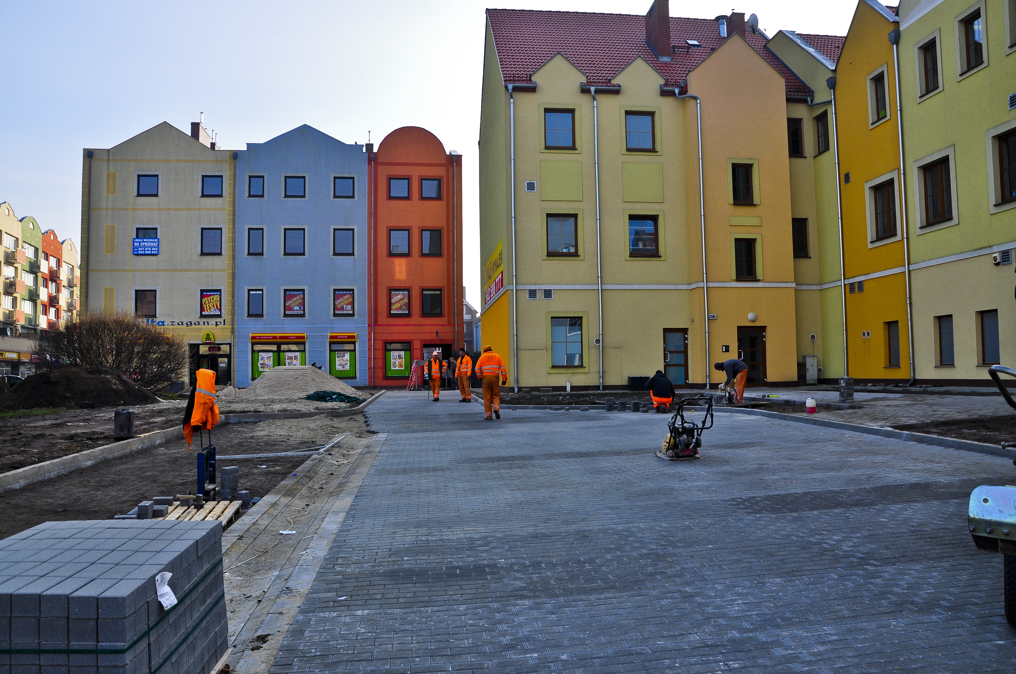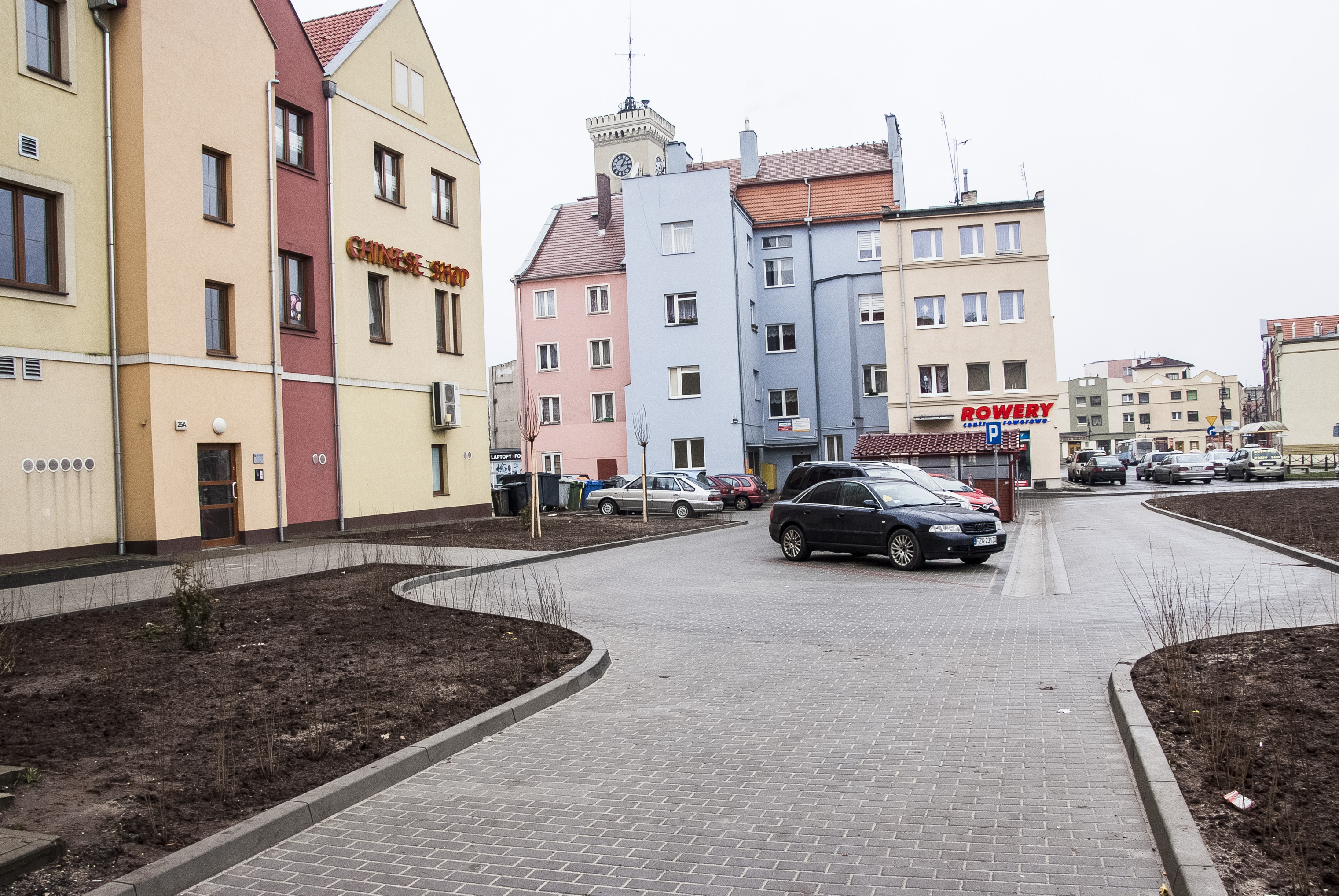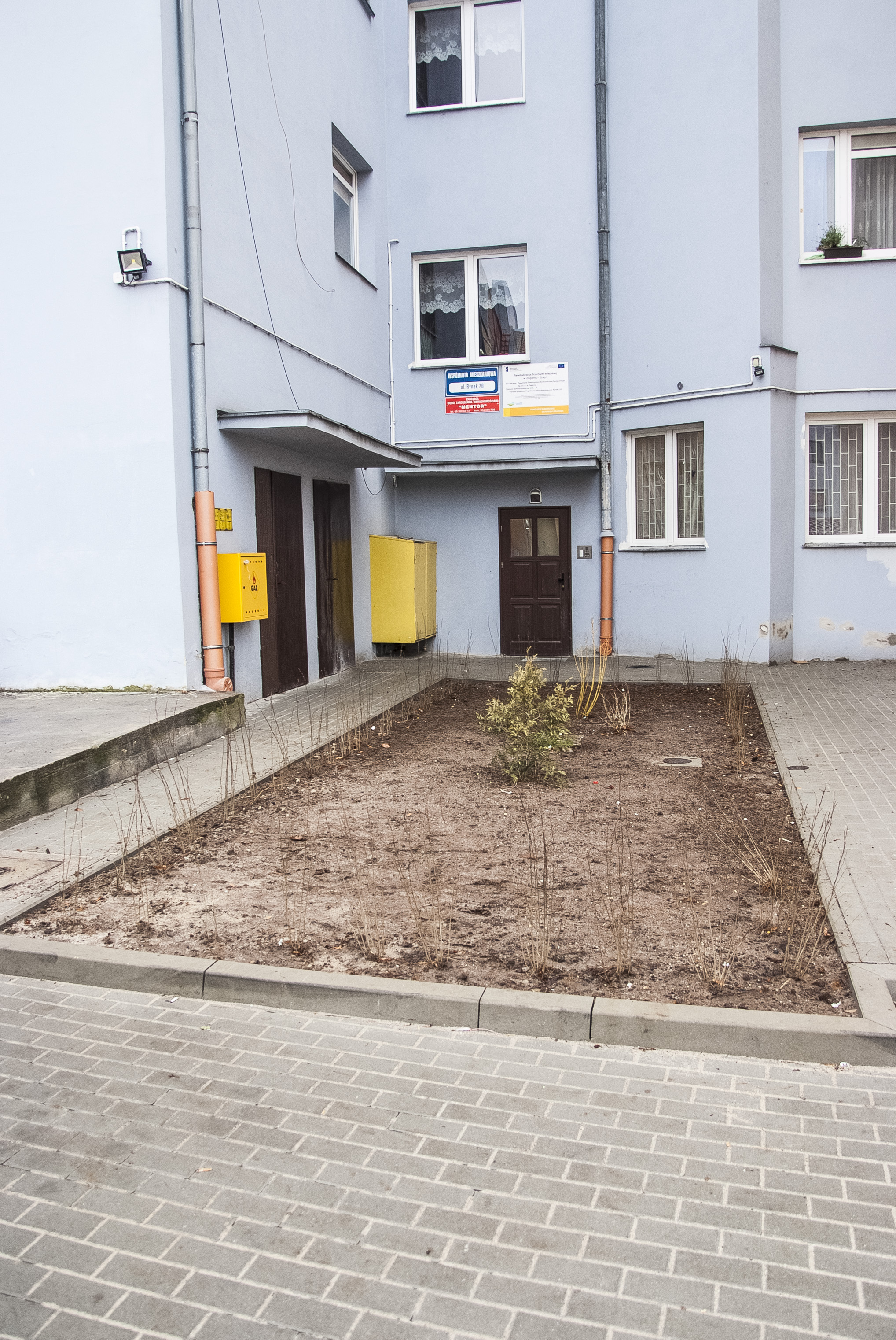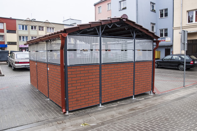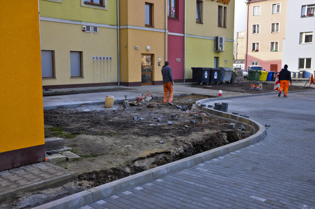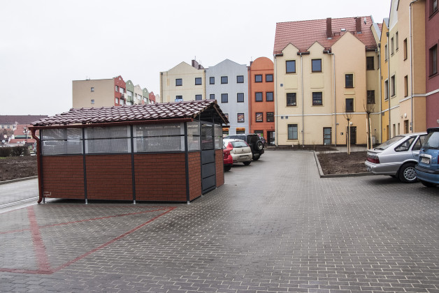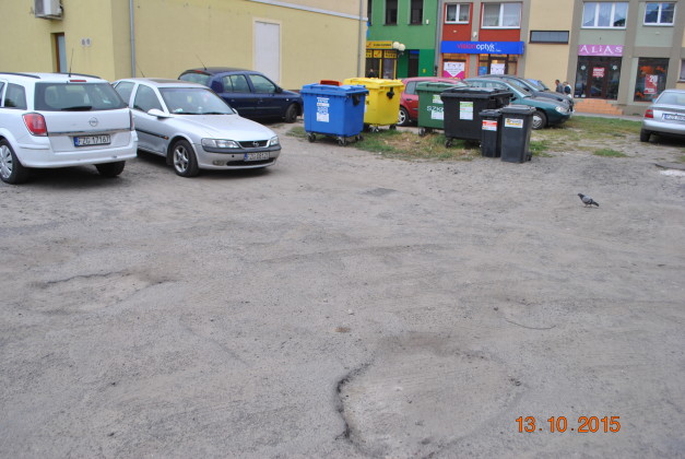 Przedmiotem inwestycji było zagospodarowanie kwartału oraz wyznaczenie miejsc postojowych dla pojazdów parkujących dotychczas w sposób dowolny i chaotyczny. Mając na uwadze konieczność poprawienia warunków technicznych i estetyki otoczenia wyłożono nawierzchnię kwartału kostką brukową betonową, wyznaczając równocześnie miejsca   parkingowe, drogę wewnętrzną okrężną, dojścia do istniejących budynków mieszkalno-usługowych oraz wykonując nowe nasadzenia. Na terenie inwestycji znajdują się również pojemniki na odpady, które obsługują kilka przyległych budynków mieszkalnych. Ponieważ nieutwardzona nawierzchnia działki nie spełniała wymogów stanowisk śmietnikowych,   wybudowano altanę śmietnikową (wiatę na pojemniki stałe). Aby najpełniej ocenić zakres wykonanych prac, zachęcamy do obejrzenia galerii zdjęć pokazujące teren przed i po inwestycji.