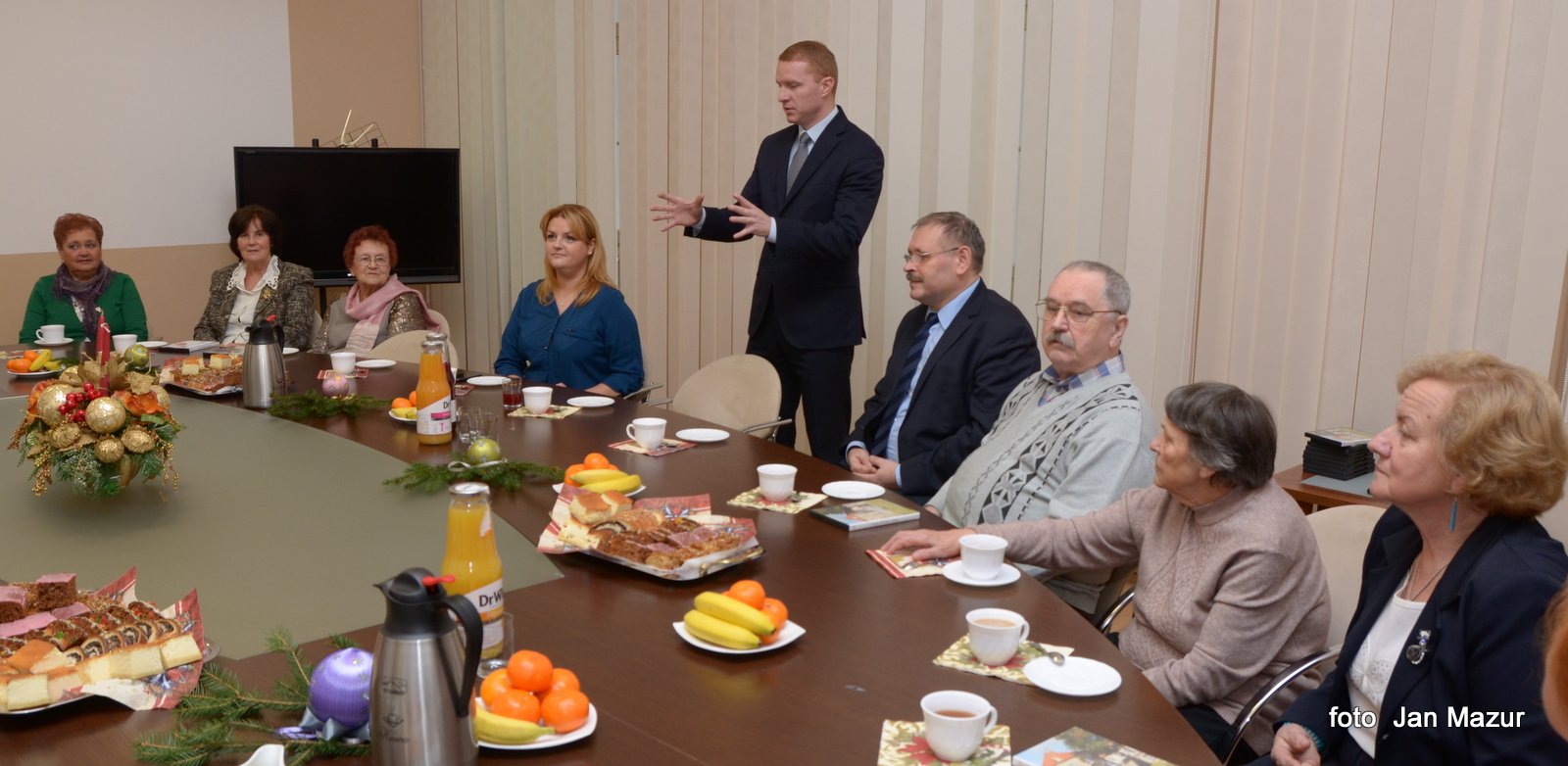 17 dzień grudnia przyniósł kolejną okazję do spotkania się w świątecznej atmosferze z emerytowanymi pracownikami Urzędu Miasta Żagań. Burmistrz Daniel Marchewka podziękował gościom za przybycie i przedstawił aktualną strukturę Urzędu. Jak podkreślił w trakcie powitania, emerytowani pracownicy każdego zakładu i instytucji noszą w sobie pamięć o minionej strukturze, relacjach, zasadach funkcjonowania – są jak twardy dysk komputera, zachowując w swej pamięci fundamentalne wartości danej instytucji. Na zakończenie burmistrz Daniel Marchewka złożył przybyłym życzenia świąteczne i noworoczne. Emerytowani pracownicy dzielili się ze sobą wspomnieniami oraz zabawnymi anegdotami na temat wykonywanej przed laty pracy.
