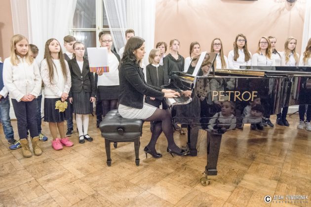Wystąpili soliści, zespoły rytmiczne, zespoły instrumentalne, kameralne oraz chór PSM I i II stopnia. Były też recytacje jesiennej poezji (program koncertu). Licznie przybyli słuchacze nagradzali oklaskami wszystkich młodych muzyków, którzy zaprezentowali nie tylko wysoki poziom artystyczny, ale też wielkie zaangażowanie i pasję. Szczególnie podobały się zespoły kameralne i niezwykle okazale (w dużym składzie) brzmiący chór. Najmłodsi uczniowie – występujący w zespołach rytmicznych – wzruszali i rozbawiali (także zdolnościami aktorskimi!). Wieczór okazał się tak udany, że aż szkoda było opuszczać „pękającą w szwach” Salę Familijną. Koncert zapowiadała Klaudia Semeniuk, a przygotowała i wyreżyserowała pani Elżbieta Kusz-Tracz. Następny – podobny – szkoła muzyczna przygotowuje na okres przedświąteczny. W programie – kolędy, piosenki i inne utwory „świąteczne”. Zapraszamy!