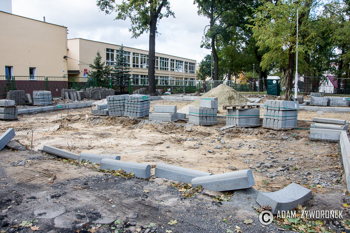 Galeria zdjęć ukazująca parking przed i w trakcie przebudowy