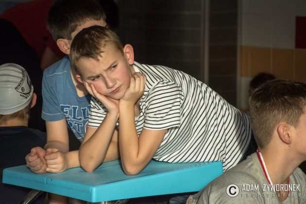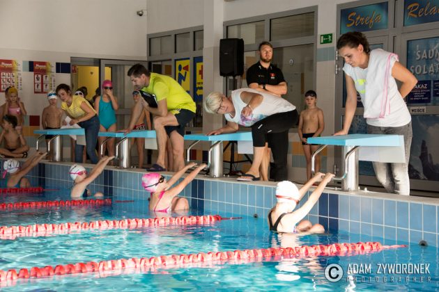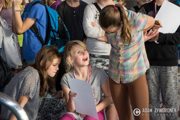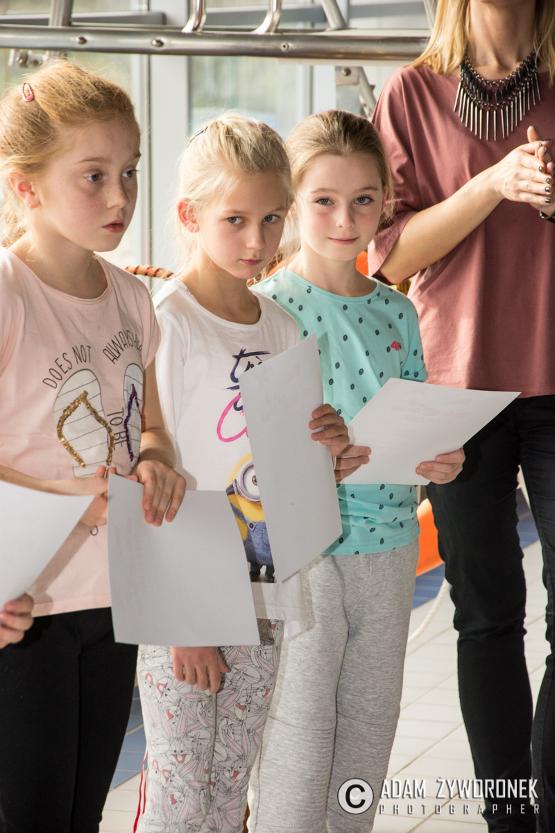 – Dobrze mi się płynęło – mówi Emilka Walaszczyk, zwyciężczyni wyścigu na dystansie 25 metrów stylem grzbietowym, w grupie uczniów klas drugich. – Trenuję pływanie od dwóch lat. Pierwszy sukces miałam podczas zawodów z okazji Dnia Dziecka, Wówczas zajęłam drugie miejsce.