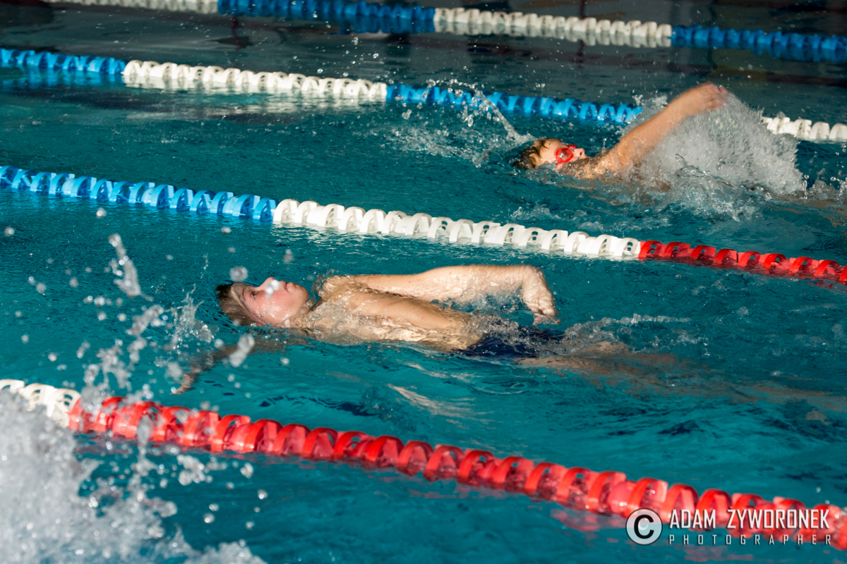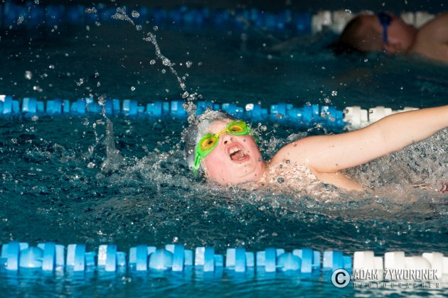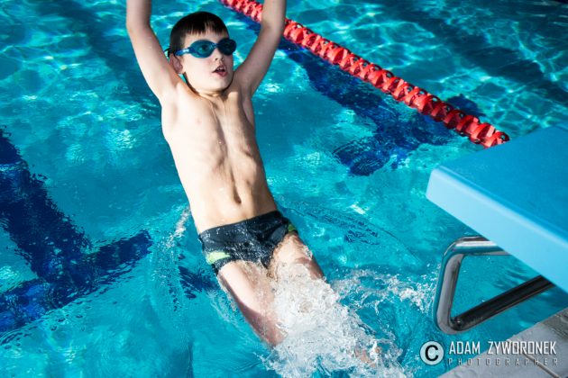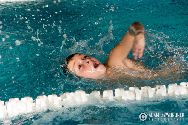 Grzegorz Kowalski trenuje od przedszkola i świetnie radzi sobie w wodzie. Zwyciężył w grupie chłopców z klas drugich, w stylu grzbietowym.