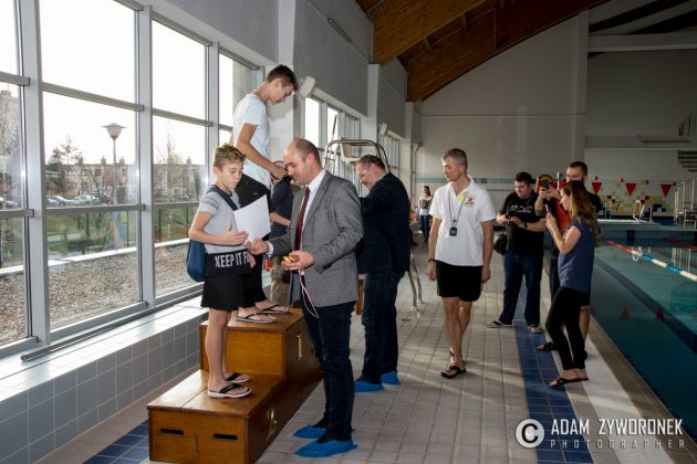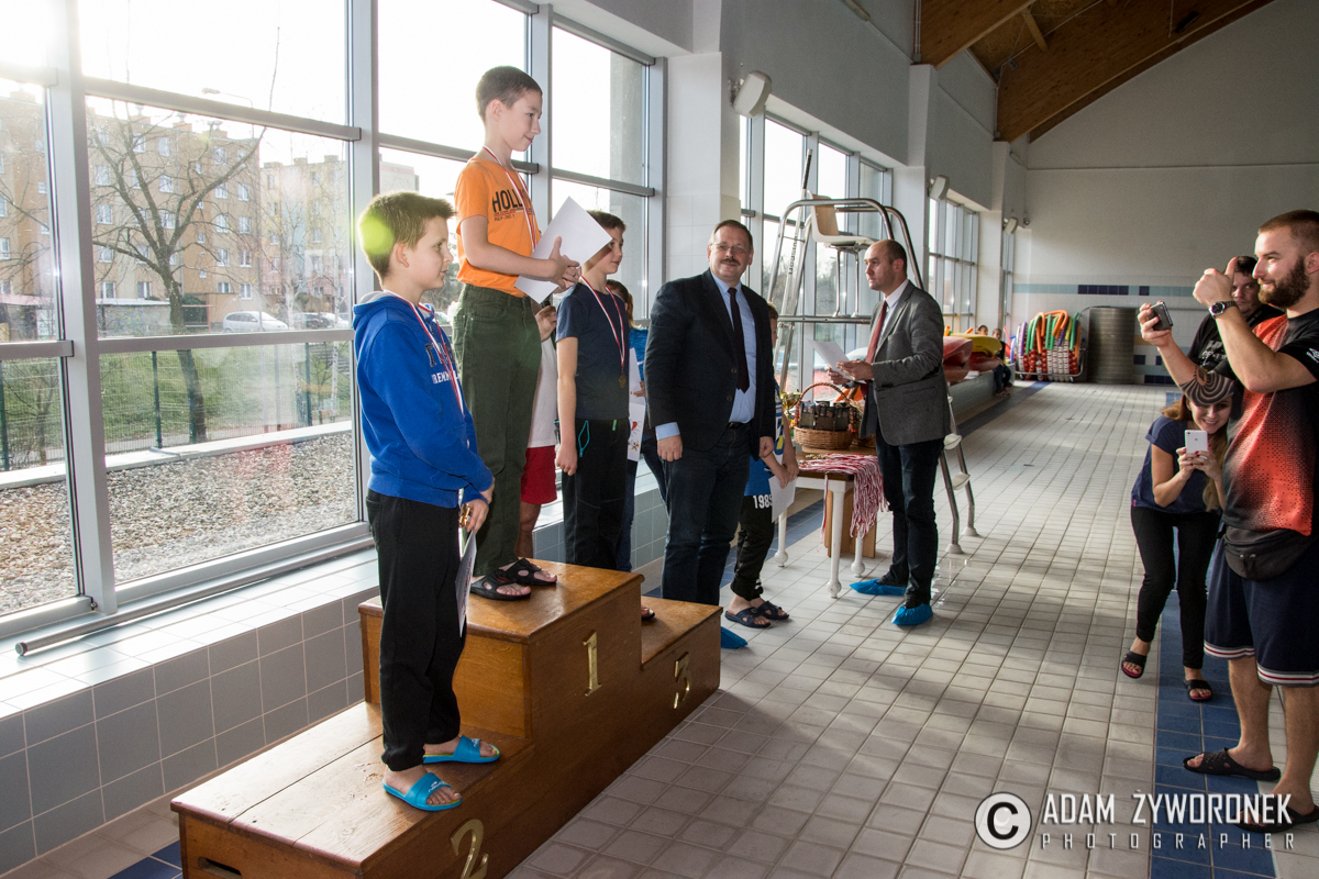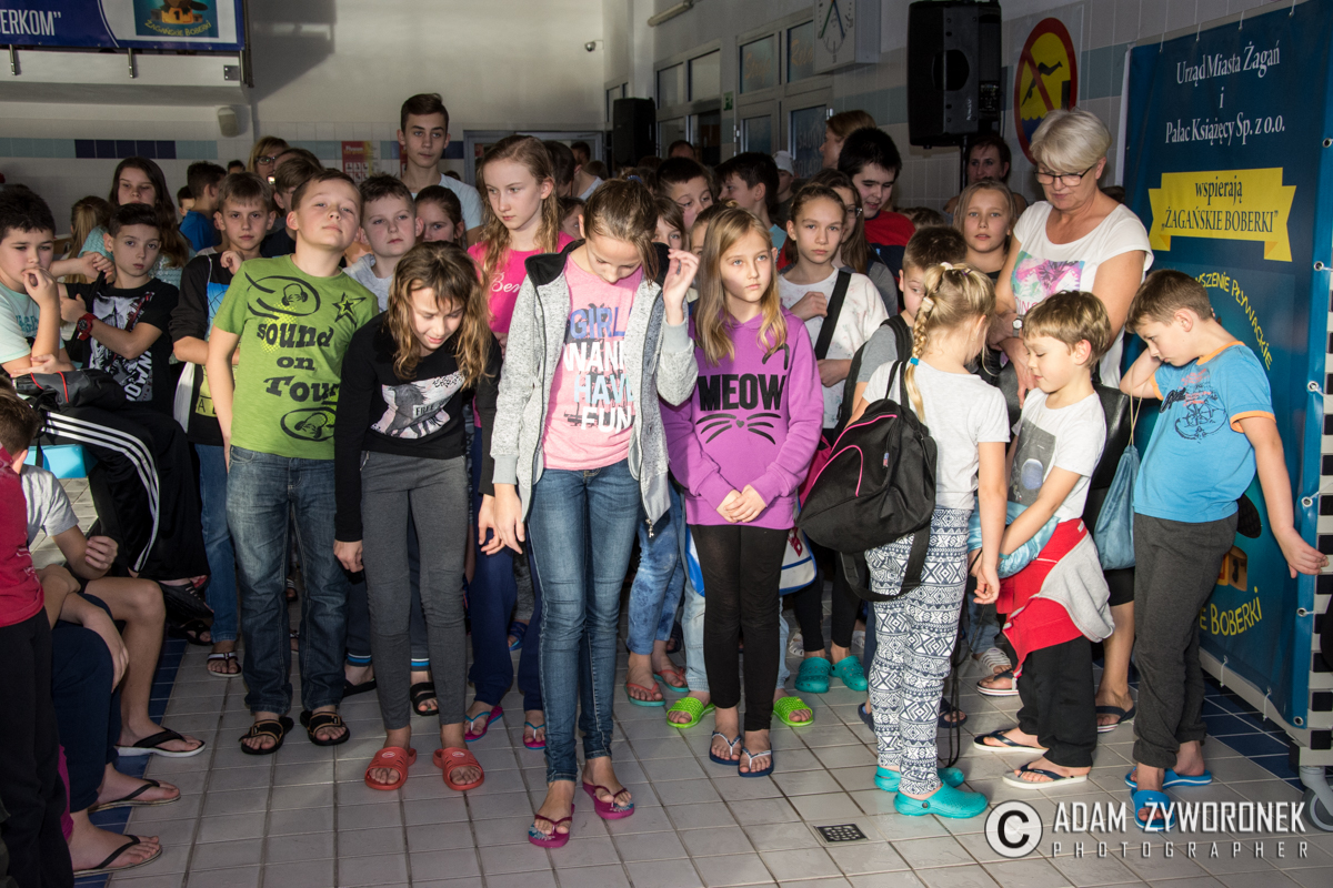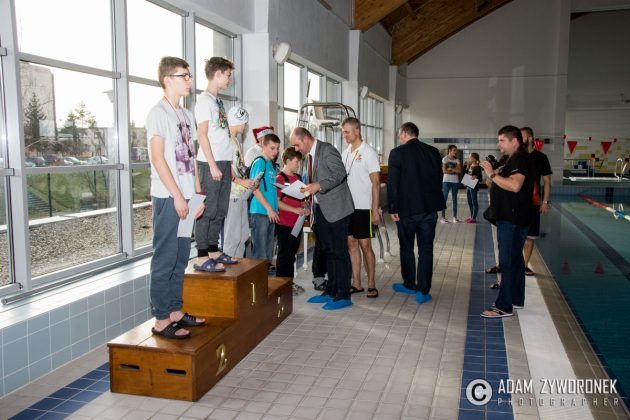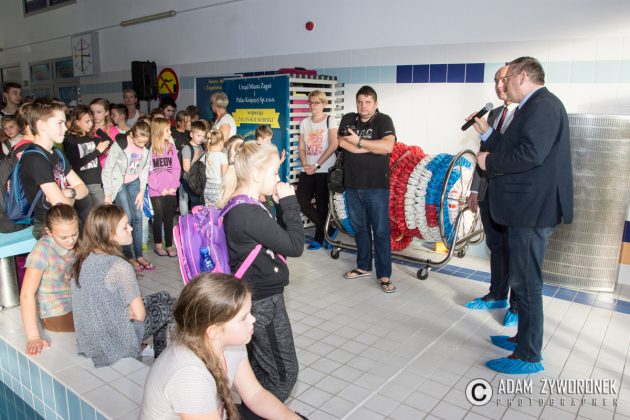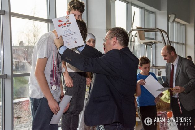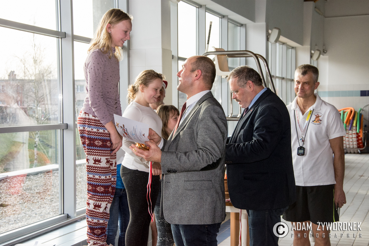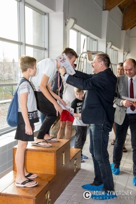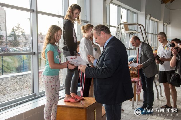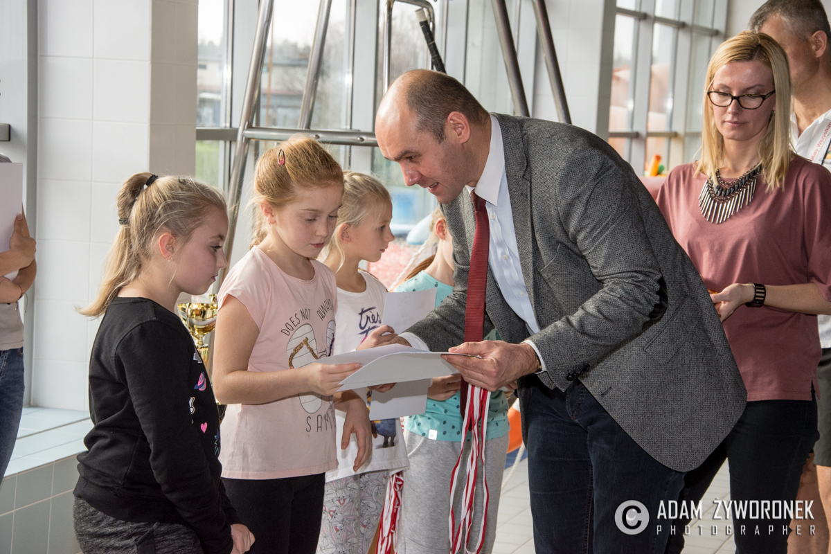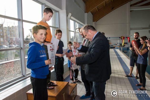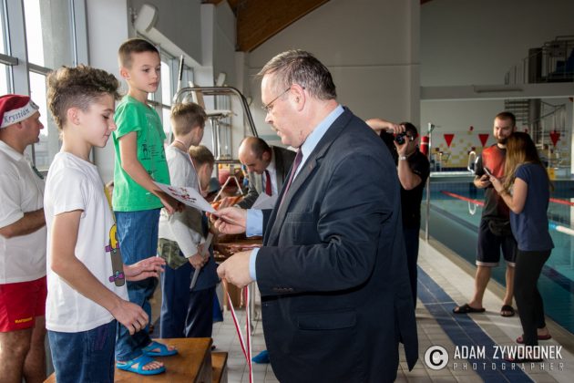 Dyplomy i medale najlepszym zawodnikom z klas IV-VI wręczał dyrektor Zbigniew Białkowski, szef Departamentu Infrastruktury i Oświaty w Urzędzie Miasta Żagań. Najmłodszym pływakom medale wręczył Paweł Lóssa, prezes miejskiej spółki Pałac Książęcy. – Miasto co roku przeznacza 180 tys. zł na naukę pływania dla dzieci – zaznacza P. Lóssa. – Dzięki dotacji w lekcjach mogą uczestniczyć nasze wszystkie szkoły podstawowe. Dzieci są przewożone na basen i odwożone autobusami MZK. Również latem zapewniamy im opiekę ratowników, podczas zabaw na kąpielisku w parku.