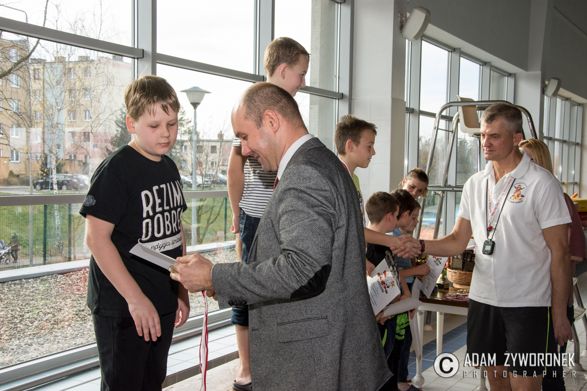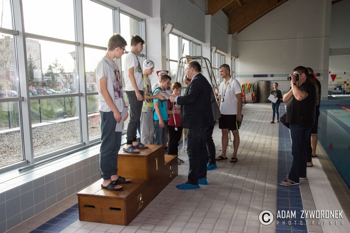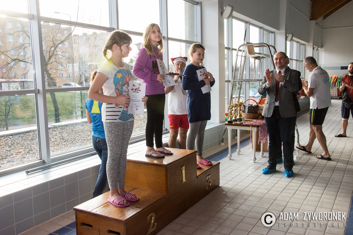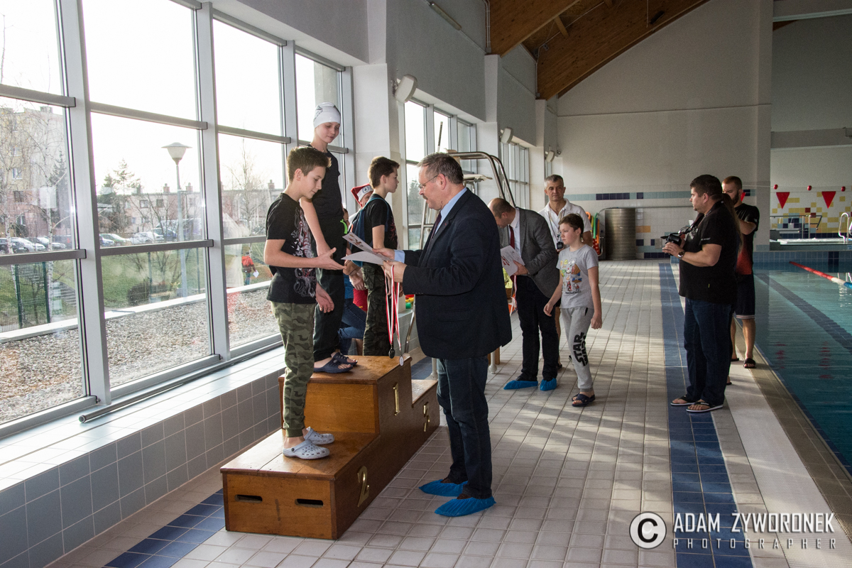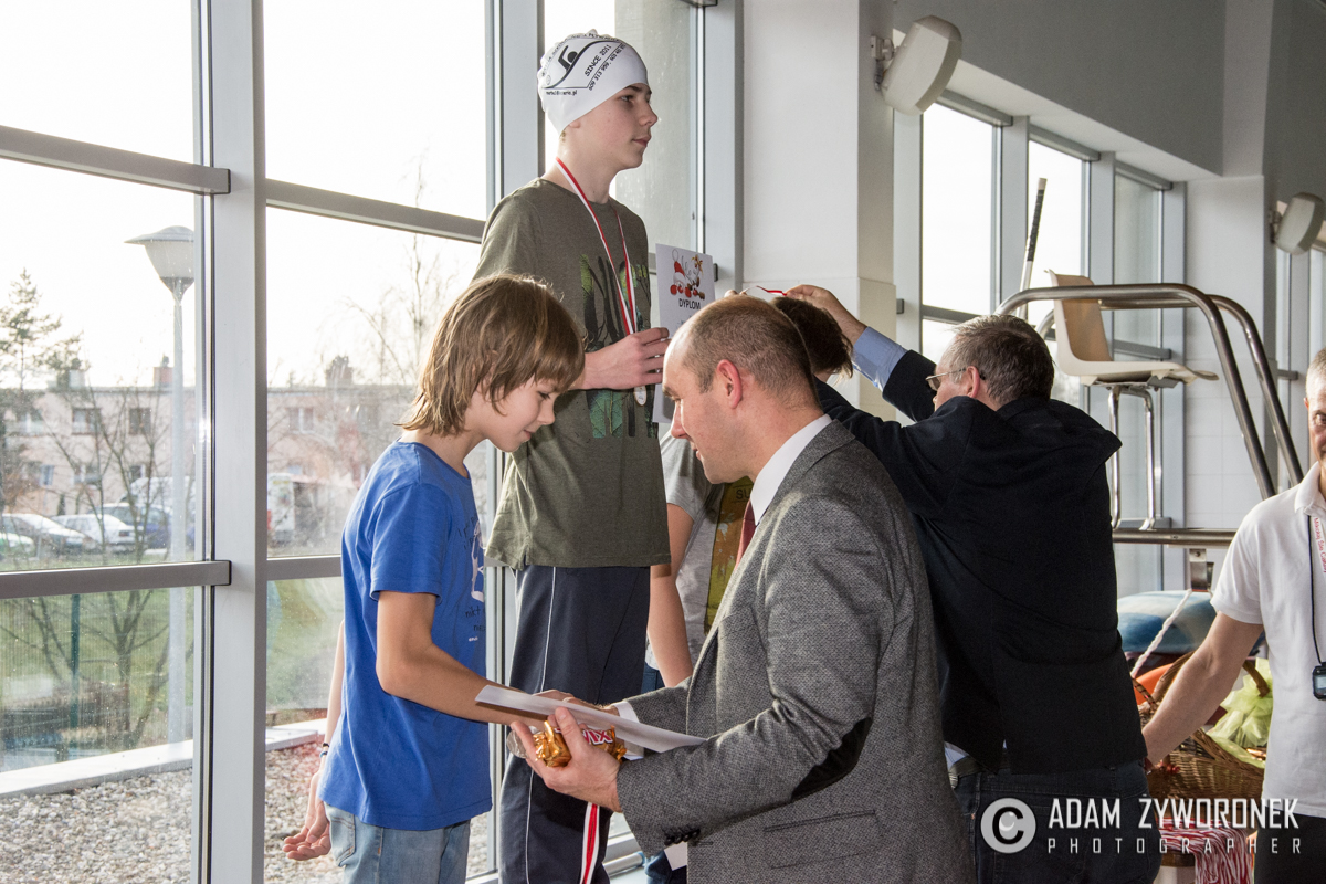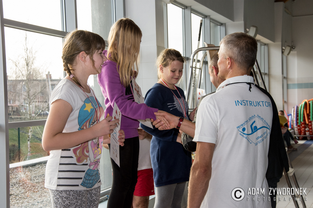 Dyplomy i medale najlepszym zawodnikom z klas IV-VI wręczał dyrektor Zbigniew Białkowski, szef Departamentu Infrastruktury i Oświaty w Urzędzie Miasta Żagań. Najmłodszym pływakom medale wręczył Paweł Lóssa, prezes miejskiej spółki Pałac Książęcy. – Miasto co roku przeznacza 180 tys. zł na naukę pływania dla dzieci – zaznacza P. Lóssa. – Dzięki dotacji w lekcjach mogą uczestniczyć nasze wszystkie szkoły podstawowe. Dzieci są przewożone na basen i odwożone autobusami MZK. Również latem zapewniamy im opiekę ratowników, podczas zabaw na kąpielisku w parku.