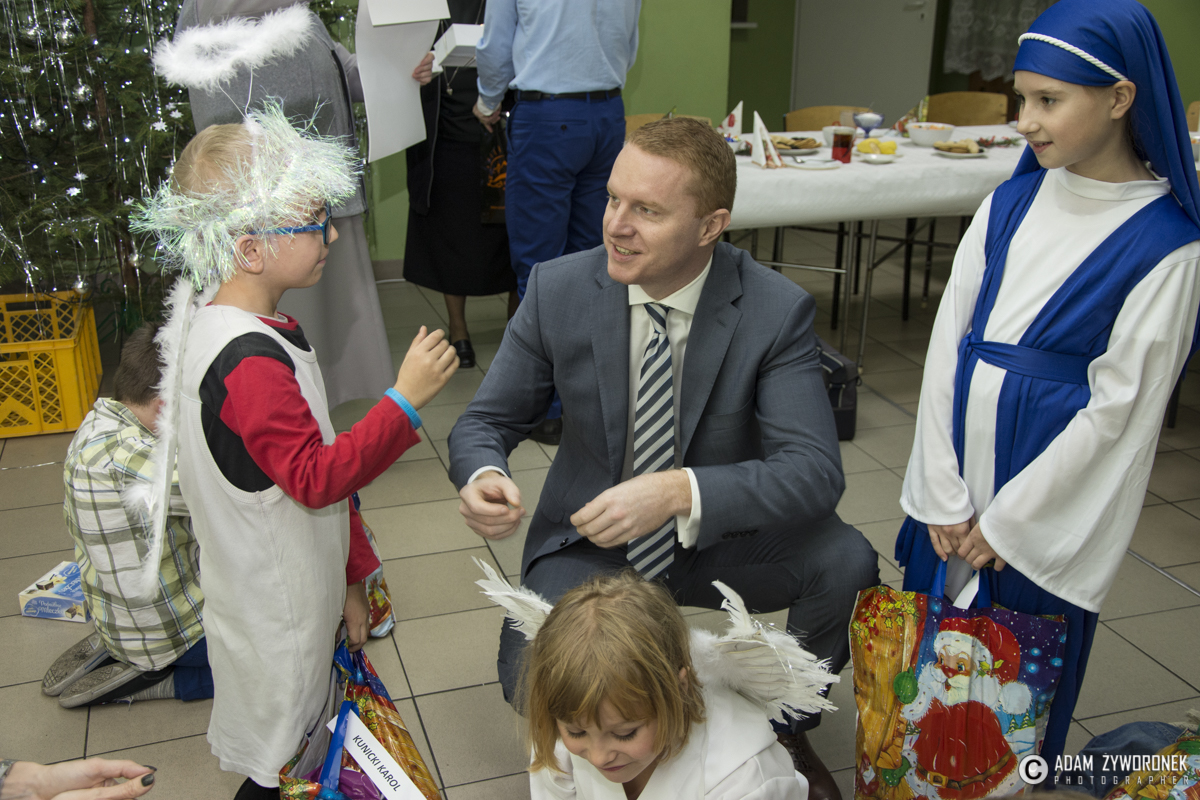 20 grudnia br. w świetlicy dla dzieci przy Parafii Wniebowzięcia NMP w Żaganiu odbyło się świąteczne spotkanie wigilijne. W uroczystości przygotowanej przez dzieci oraz siostry Adoratorki Krwi Chrystusa, wziął udział burmistrz Daniel Marchewka oraz przedstawiciele Urzędu Miasta. We wspaniały nastrój Świąt Bożego Narodzenia, dzieci wprowadziły gości przedstawieniem jasełkowym oraz wspólnym kolędowaniem. Następnie podzielono się opłatkiem, a płynącym prosto z serc życzeniom i uściskom nie było końca. Burmistrz życząc wszystkim zdrowych, spokojnych, a przede wszystkim szczęśliwych świąt i wspaniałego nadchodzącego Nowego Roku 2017, wręczył dzieciom paczki świąteczne, a także obdarował je symbolicznymi upominkami oraz koszem pełnym słodyczy. Wspólnie spędzony czas upłynął w magicznej atmosferze, pełnej uśmiechu, optymizmu i nadziei na nadchodzący rok.