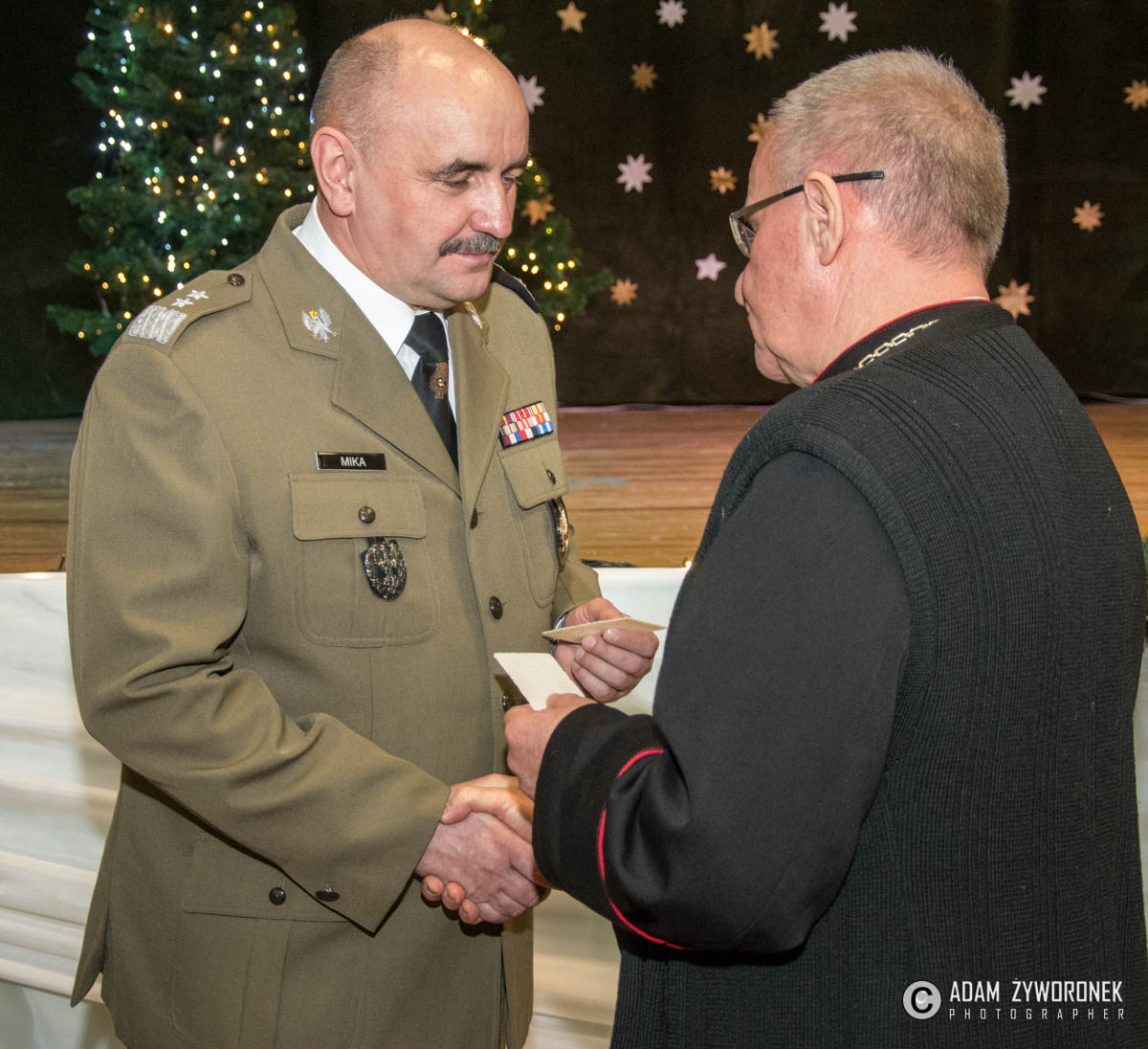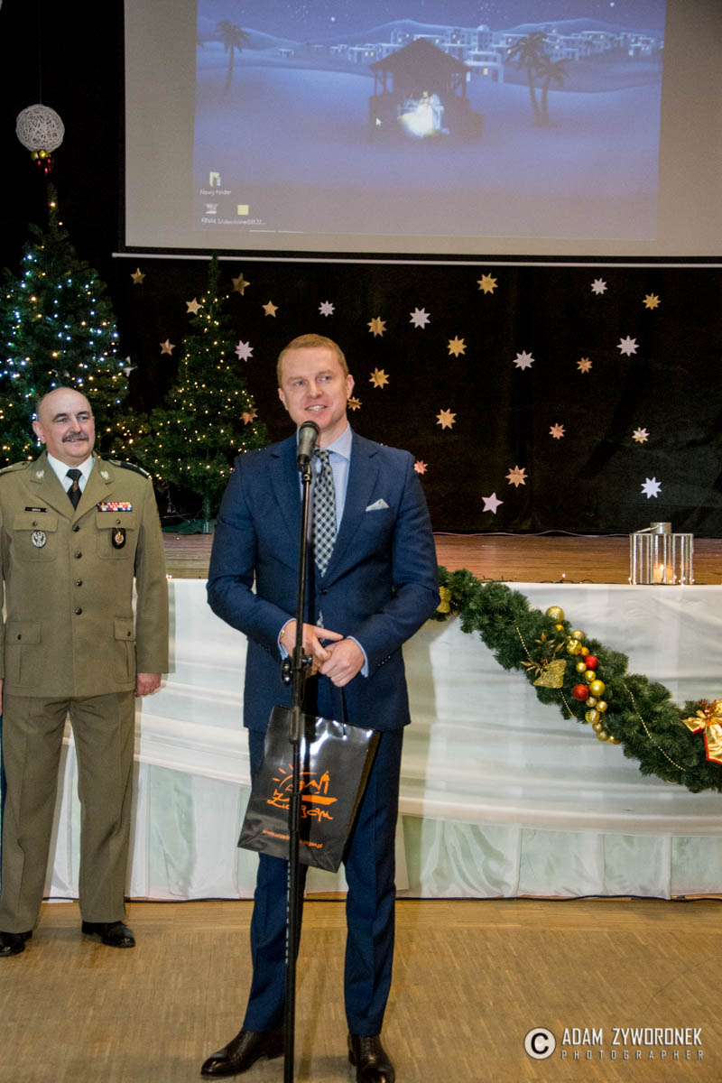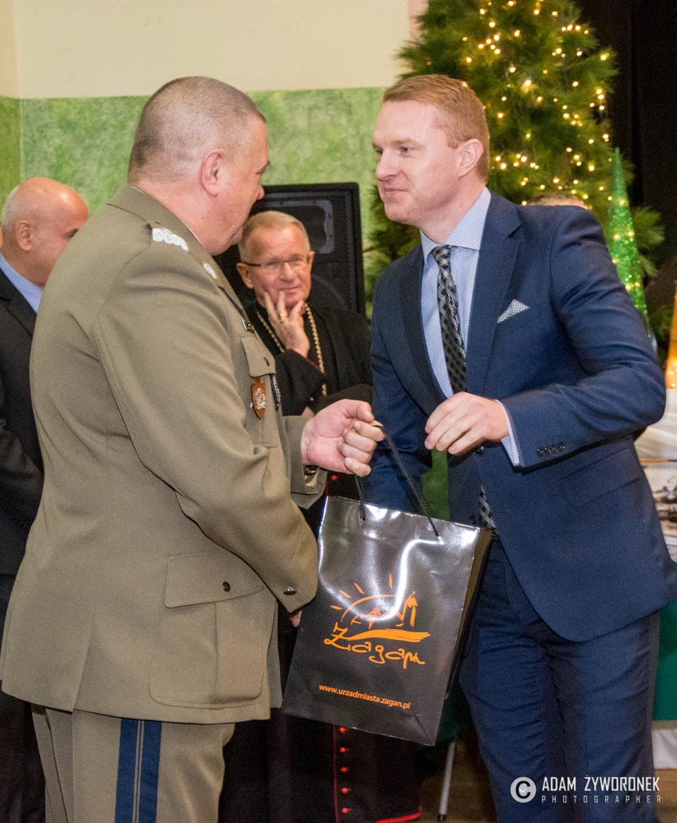 Wigilijne spotkanie rozpoczął występ dzieci ze Publicznej Szkoły Podstawowej nr 2 w Żaganiu im. 11 Lubuskiej Dywizji Kawalerii Pancernej.  Ksiądz prałat Eugeniusz Jankiewicz pobłogosławił świąteczne opłatki oraz przypomniał znaczenie wigilii dla wspólnoty. Gościem żołnierzy był burmistrz Daniel Marchewka, który podkreślił znaczenie Czarnej Dywizji dla miasta i złożył serdeczne życzenia przyjaciołom w mundurach z czarnym naramiennikiem.