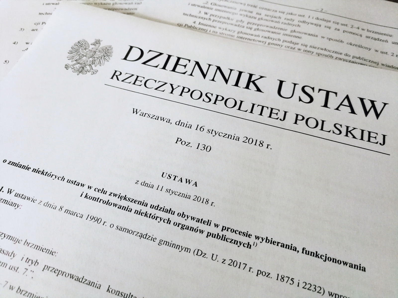 W środę, 31 stycznia, weszła w życie ustawa o zmianie niektórych ustaw w celu zwiększenia udziału obywateli w procesie wybierania, funkcjonowania i kontrolowania niektórych organów publicznych. Jej częścią jest nowelizacja Kodeksu wyborczego. Najważniejsze zmiany dotyczą między innymi zmiany definicji znaku „X” i zasad ważności głosu, wprowadzenia dwóch rodzajów obwodowych komisji wyborczych oraz transmisji z przebiegu głosowania w lokalach obwodowych komisji wyborczych. Głosowanie korespondencyjne ograniczone zostało tylko do osób niepełnosprawnych. Ustawa wprowadza także nowe zasady powoływania Szefa Krajowego Biura Wyborczego i komisarzy wyborczych oraz powołanie nowego składu Państwowej Komisji Wyborczej w 2019 roku. Zmiany w Kodeksie wyborczym wzmacniają także uprawnienia mężów zaufania i wprowadzają funkcję obserwatorów społecznych. Utworzony także zostanie Korpus Urzędników Wyborczych.