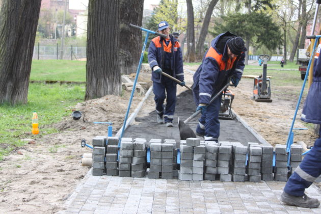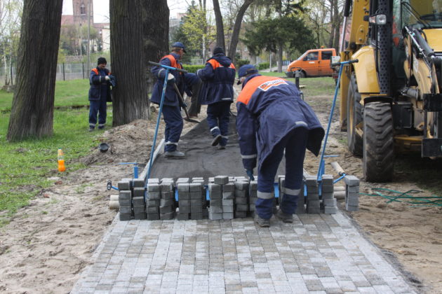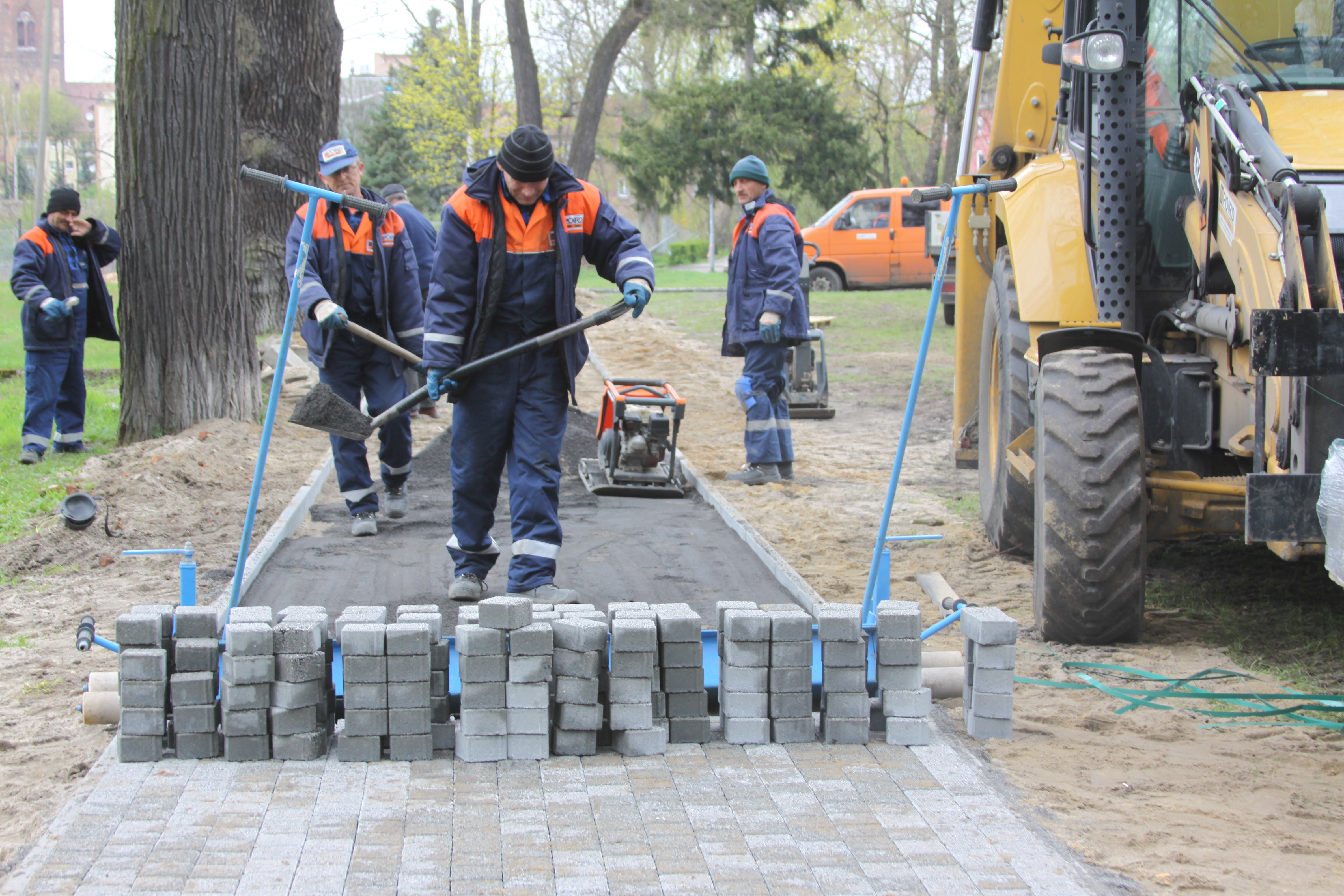 Roboty wykonuje Miejskie Przedsiębiorstwo Oczyszczania i Robót Drogowych. Modernizuje ścieżkę między mostkami, która do tej pory straszyła starymi, połamanymi płytkami chodnikowymi.