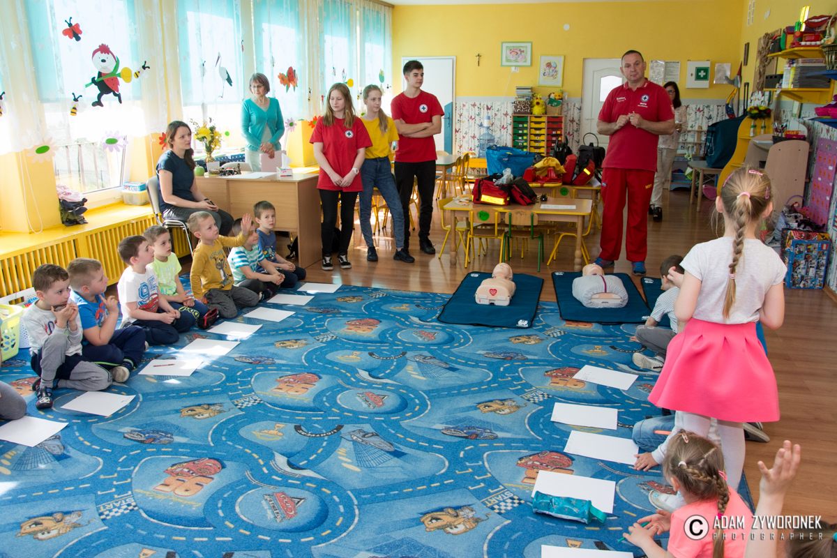 Ratownicy przekazali też podstawy resuscytacji na przywiezionych ze sobą fantomach. Podkreślali, że wiedza z zakresu udzielania pierwszej pomocy jest niezbędna nawet przedszkolakom, które mogą w razie potrzeby udzielić pomocy swoim najbliższym i nie tylko.