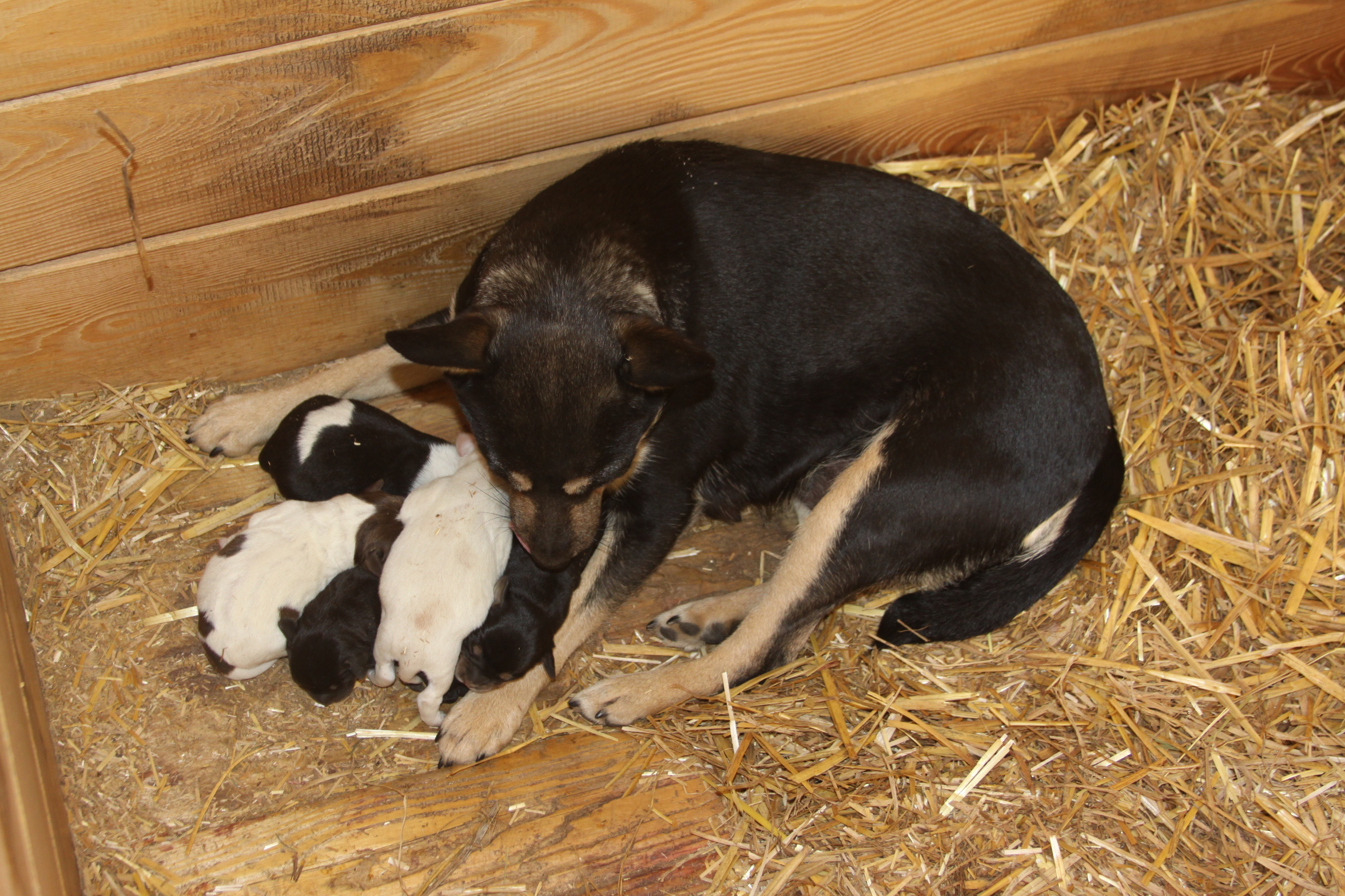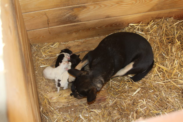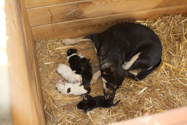 W sobotę (20 maja) bezdomna suczka oszczeniła się w przytulisku przy ul. Miodowej w Żaganiu. Bez pomocy dobrych ludzi maluchy mogą nie przeżyć.