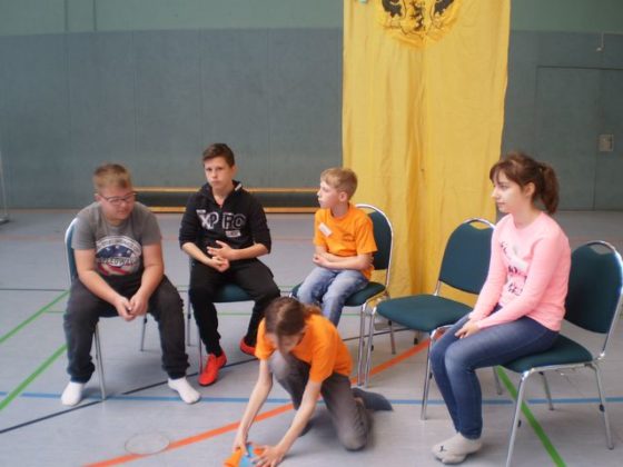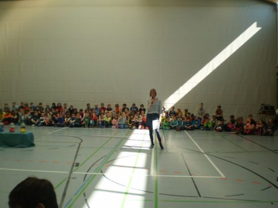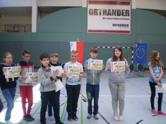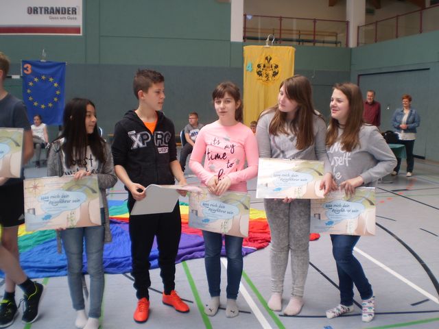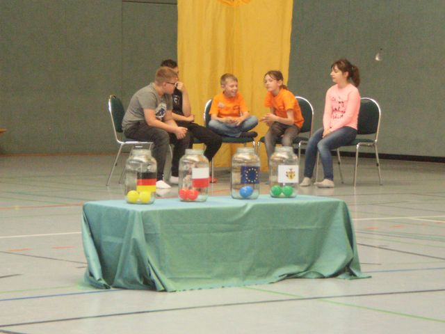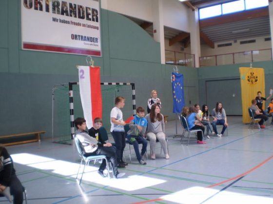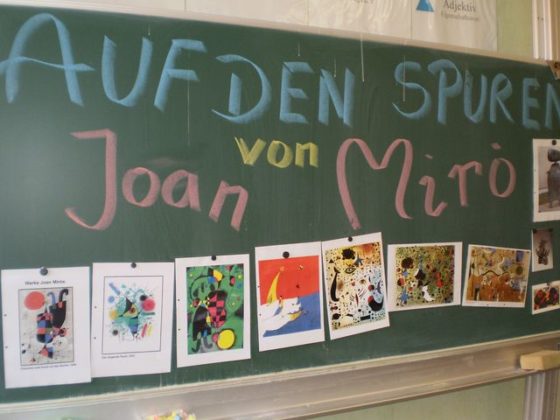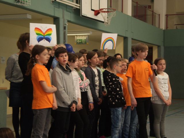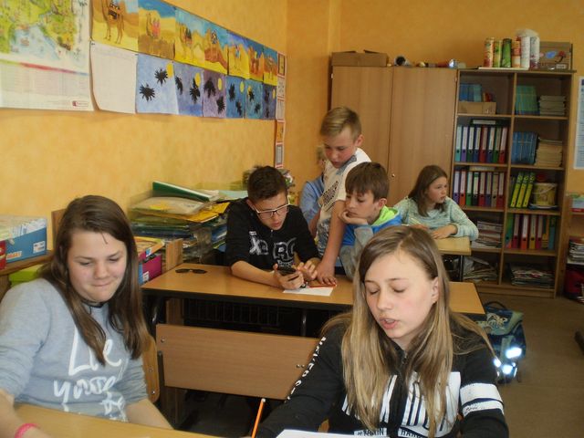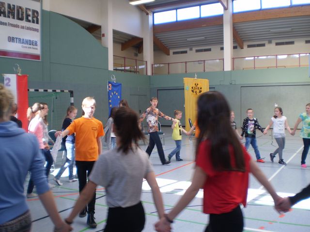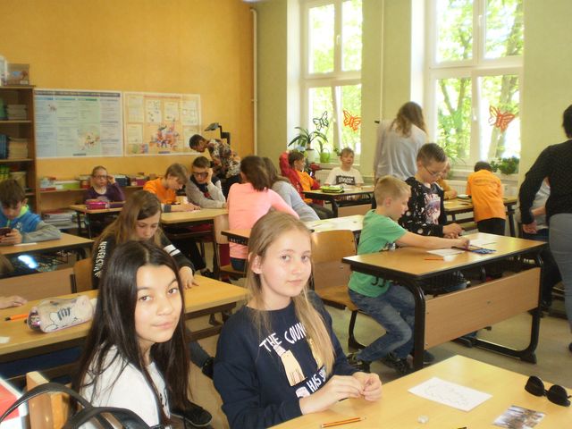 Drugi dzień wizyty uczniowie spędzili w szkole. Niemieccy koledzy przywitali nas pięknym programem w języku polskim. Mieliśmy okazję wziąć udział w lekcji wychowania fizycznego oraz konkursie wiedzowym o naszych miejscowościach. Uczniowie obu szkół zostali zaproszeni na zajęcia plastyczne, podczas których poznali twórczość Joana Miro. Wszyscy mieli możliwość wykonania pracy techniką poznanego artysty.