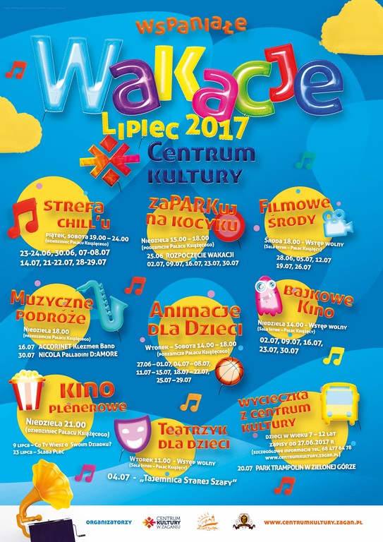 Szczegółowy plan wakacji z Centrum Kultury jest dostępny na stronie www.centrumkultury.zagan.pl
