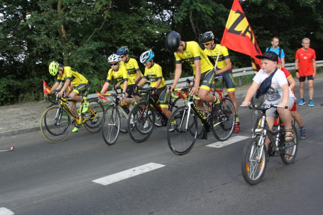 Jako pierwsi po uroczystym przecięciu wstęgi na Żarską wyjechali cykliści z Żagańskiego Towarzystwa Cyklistów Huragan oraz wyruszyli biegacze.
