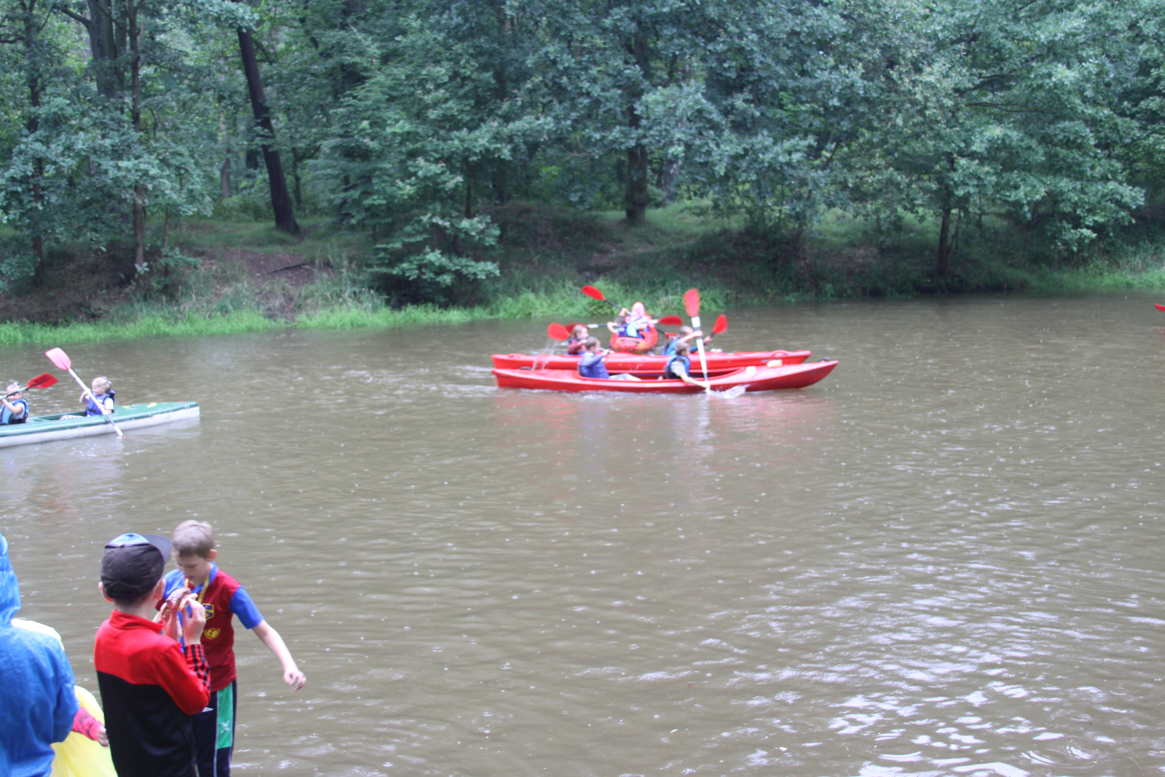 Ryszard i Maria Dyrkaczowie przygotowali dla młodych czytelników ognisko i wyścigi kajakowe po zalewie przy stanicy. Dzieciom tak się podobało, że nie chciały wychodzić na brzeg nawet podczas deszczu.