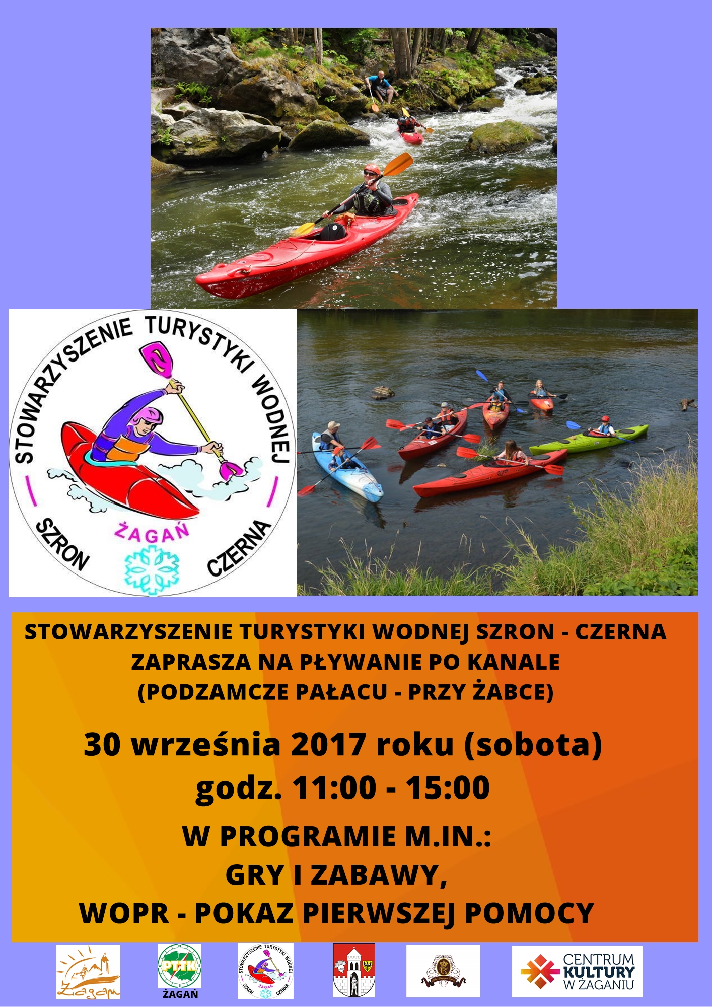 Stowarzyszenie Turystyki Wodnej Szron-Czerna zaprasza w sobotę 30 września w godz. 11.00-15.00 na pływanie po kanale Bobru, na parkowym podzamczu, przy fontannie “Żabia studnia”.