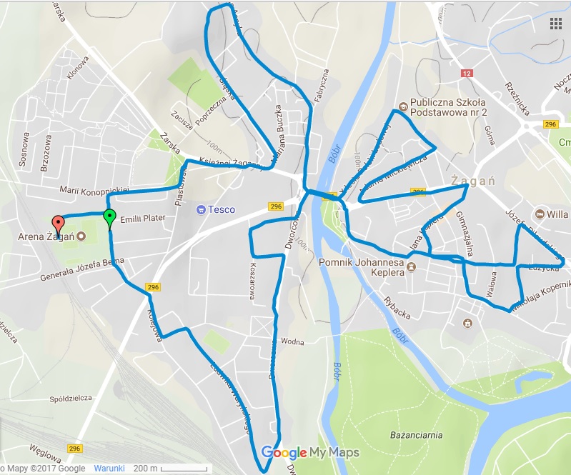 Mapa ze strony organizatora Biegu Niepodległości http://www.biegniepodleglosci.zagan.pl/