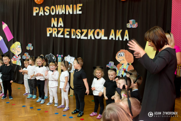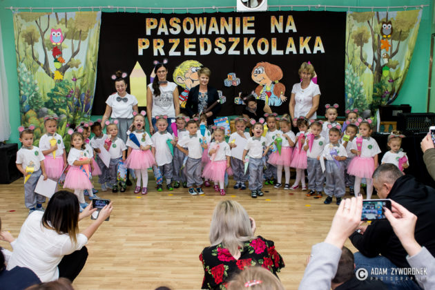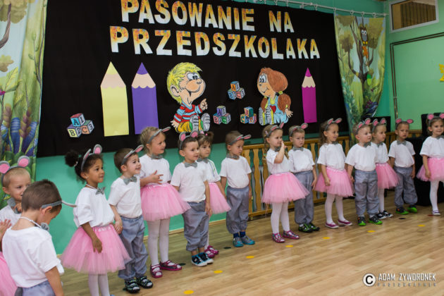 W środę 8 listopada 25-osobowa grupa Myszek została pasowana na przedszkolaków przez panią dyrektor wielkim ołówkiem. Bardzo przejęte dzieci zaprezentowały też swój pierwszy w życiu publiczny występ, gorąco oklaskiwany przez rodziców.