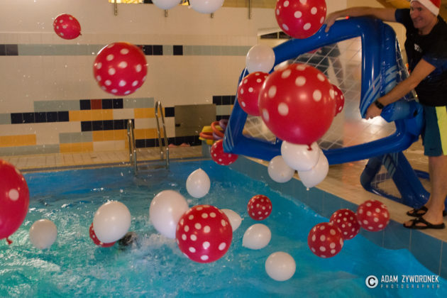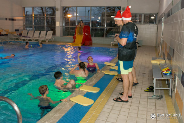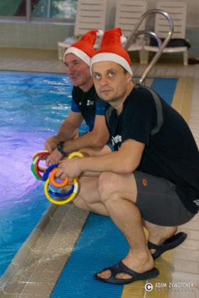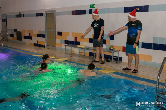 Mikołajkowe nurkowanie odbyło się na basenie Arena przy ul. Kochanowskiego. – Bawiliśmy się z grupą dzieci, które schodziły pod wodę po raz pierwszy – opowiada Dariusz Drozdek, który na mikołajki na Arenie przyleciał wprost z Egiptu. – Najmłodsza uczestniczka pierwszy oddech pod wodą zaczerpnęła wraz z tatą, który trzymał ją na rękach. Poradziła sobie bardzo dobrze. Podobnie jak reszta dzieciaków, które były zachwycone, że wystąpiliśmy w strojach Mikołajów.
