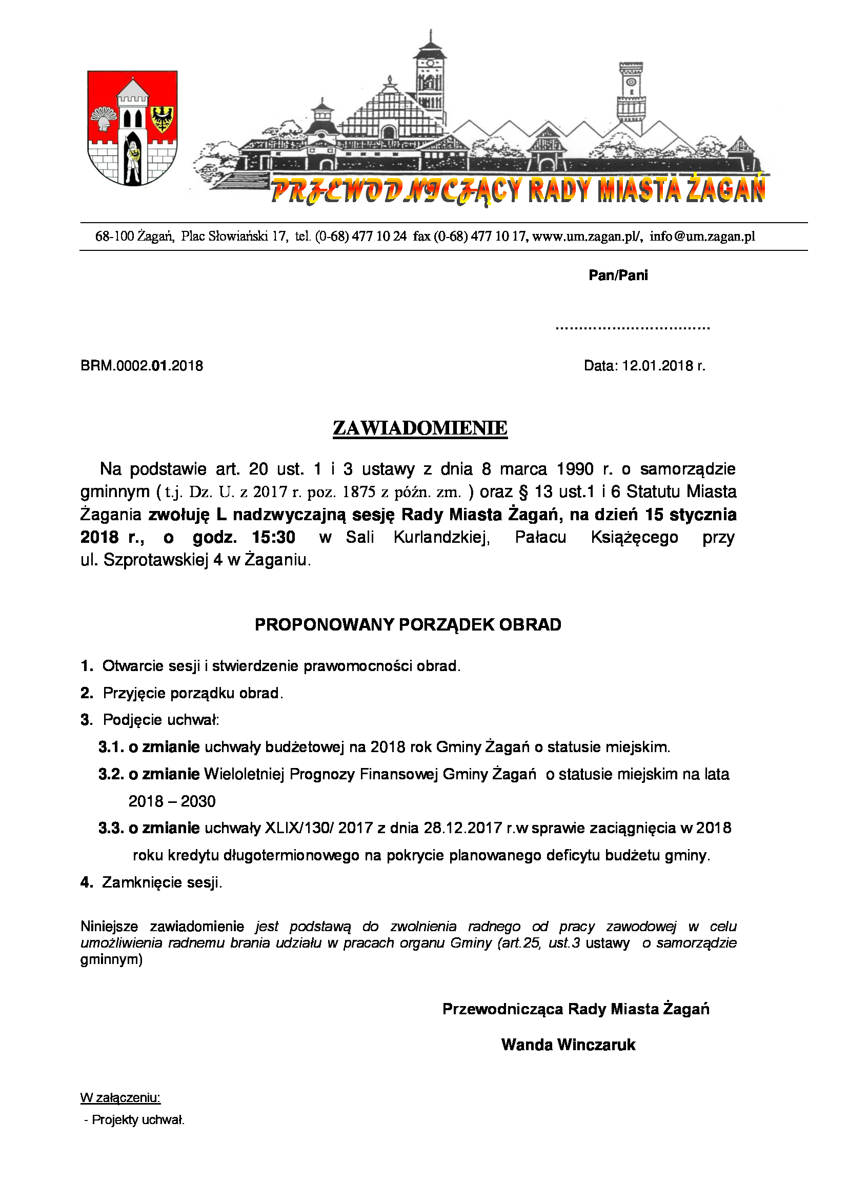 W poniedziałek 15 stycznia o godz. 15.30 w sali Kurlandzkiej Pałacu Książęcego odbędzie się nadzwyczajna sesja Rady Miasta Żagań. W porządku obrad znalazły się m.in. zmiany w budżecie.
