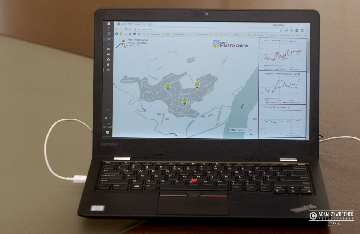 We wtorek (16 stycznia) detektor stacjonarny wraz z systemem informatycznym zaprezentował Jakub Makarewicz z firmy z Torunia, który podkreślał, że również pogoda ma bardzo znaczący wpływ na powstawanie smogu.