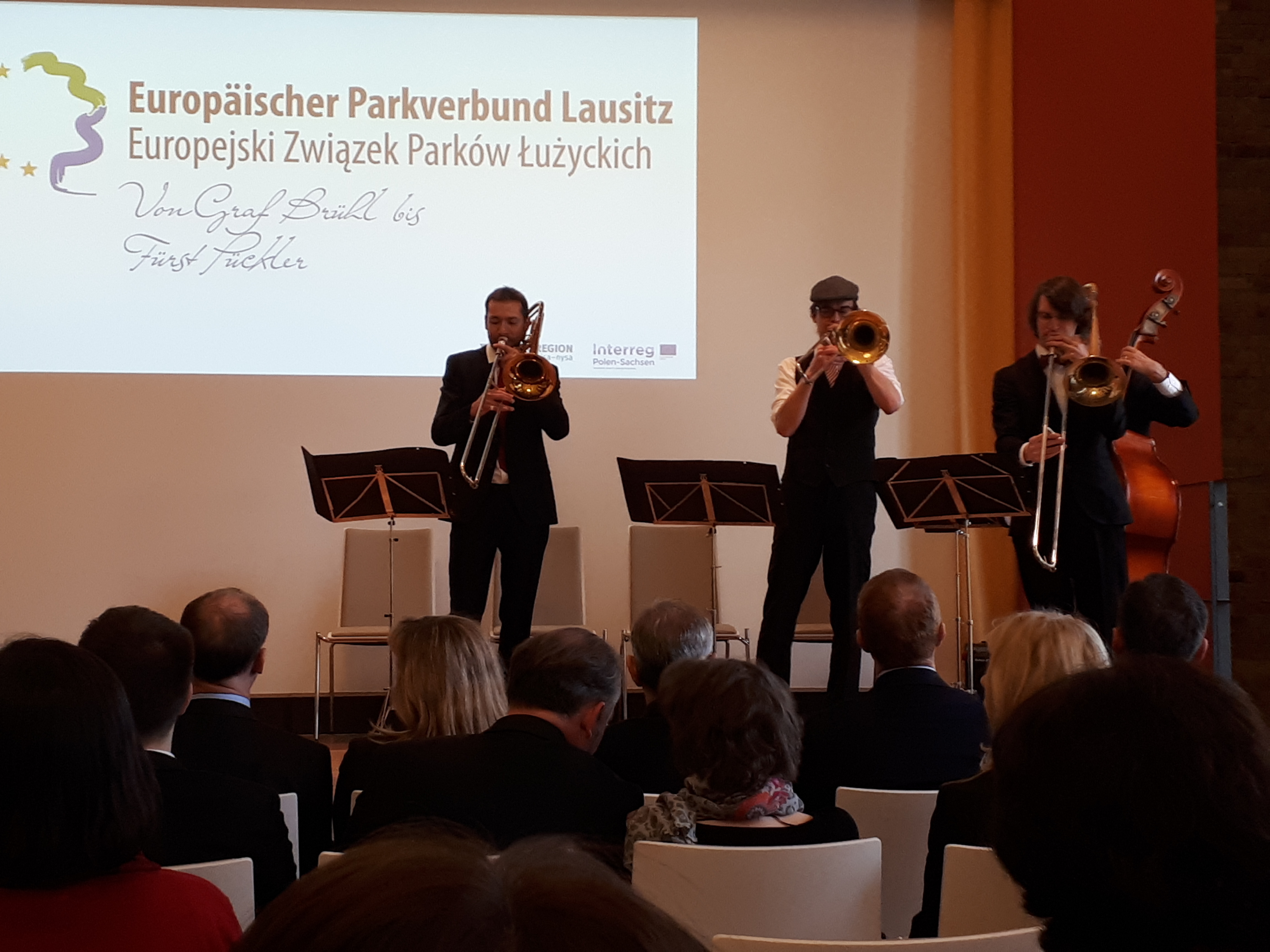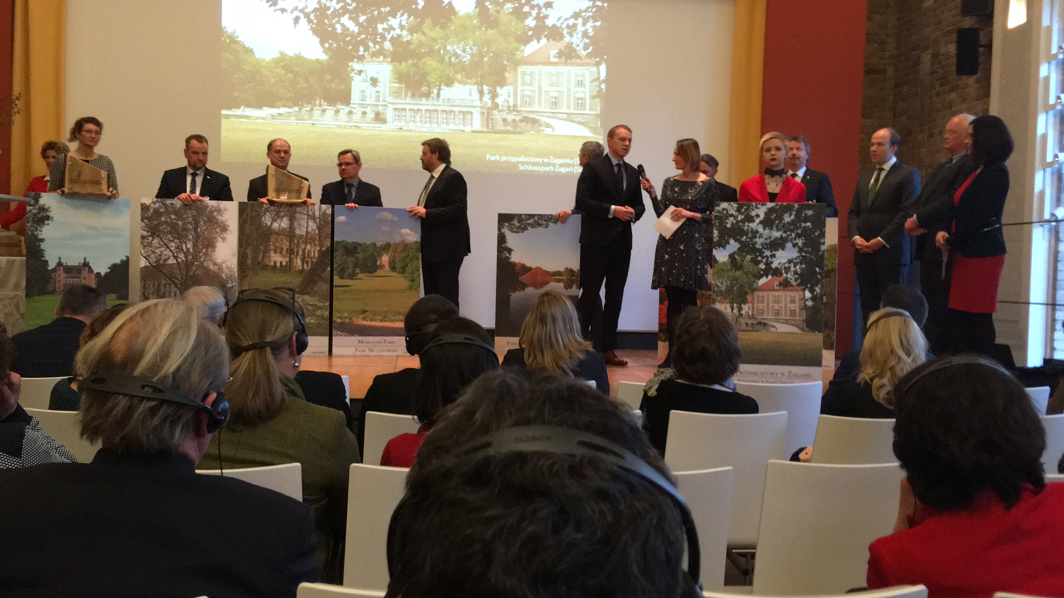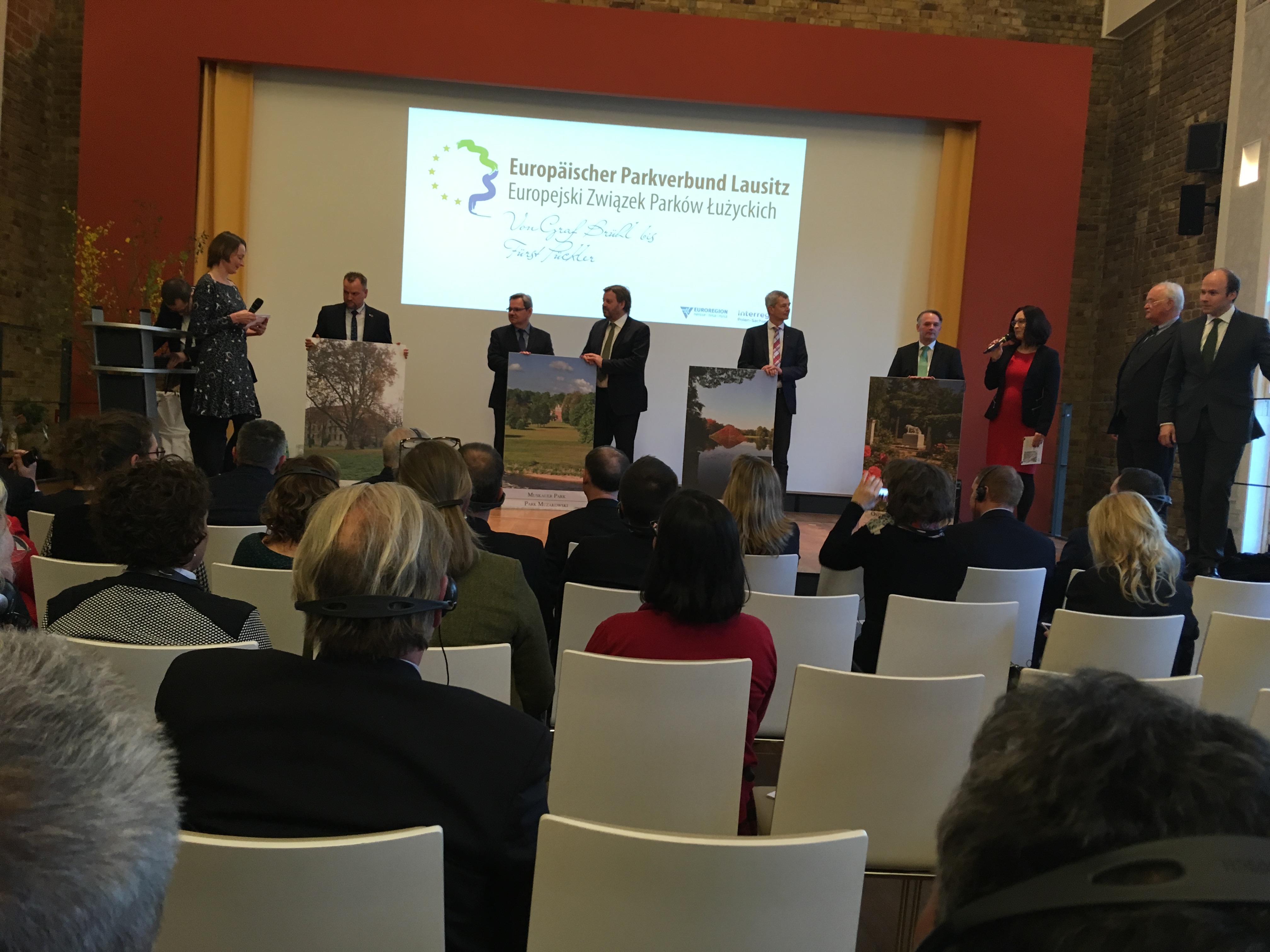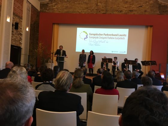 Uroczystość formalizująca rozszerzenie Związku odbyła się z udziałem min. potomków księcia Pücklera i hrabiego Brühla, przedstawicieli władz lokalnych, dyrektorów parków, architektów, geologów i dziennikarzy. W sumie ponad 200 osób towarzyszyło nowym członkom Związku Parków w tym ważnym momencie. Wszystkich uczestników w imieniu gospodarzy powitał dyrektor Parku Mużakowskiego – Cord Panning. Następnie w swoim wystąpieniu ogromną rangę wydarzenia podkreślił zastępca dyrektora Narodowego Instytutu Dziedzictwa – Pan Mariusz Czuba. W imieniu Wojewody Lubuskiego gości powitała Wojewódzka Konserwator Zabytków – Pani Barabara Bielinis-Kopeć, a o silnych więziach polsko-niemieckich na naszym pograniczu mówił prezes konwentu Euroregionu Sprewa-Nysa-Bóbr Pan Czesław Fiedorowicz. Dodatkowo dla gości przygotowano występy artystyczne: grał jazzowy zespół muzyczny z Berlina, przedstawienie “Podróż w czasie” mówiące o przeszłości, teraźniejszości i przyszłości członków EZPŁ odegrali uczniowie Szkoły Europejskiej – Gimnazjum im. Friedricha Ludwiga Jahna w Forst, a na zakończenie wystąpiły przedszkolaki z Łęknicy i Bad Muskau.