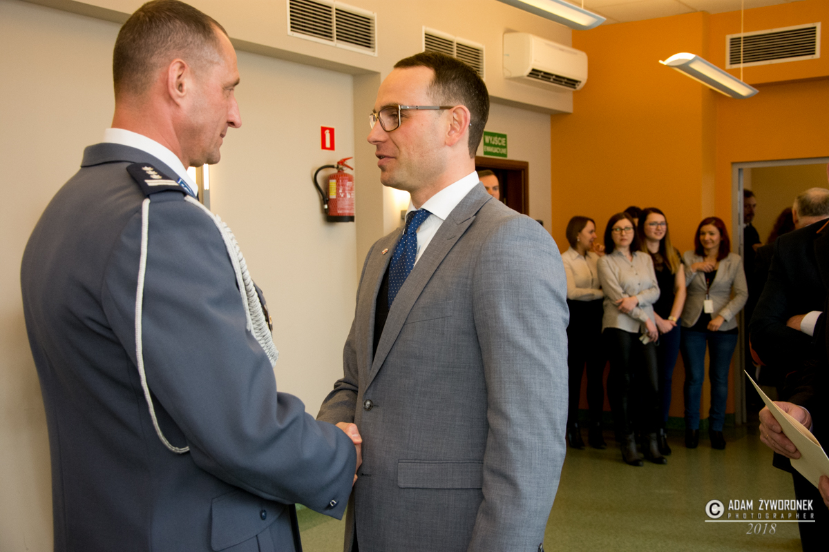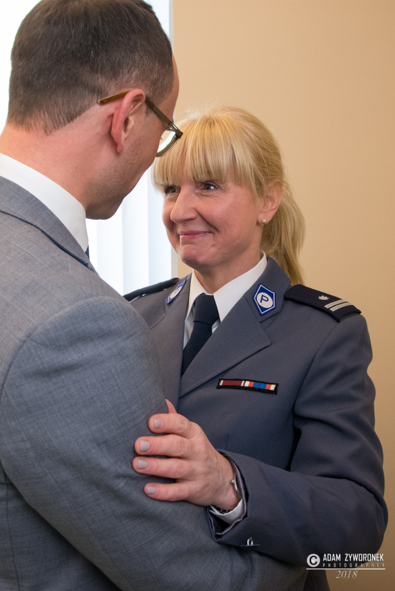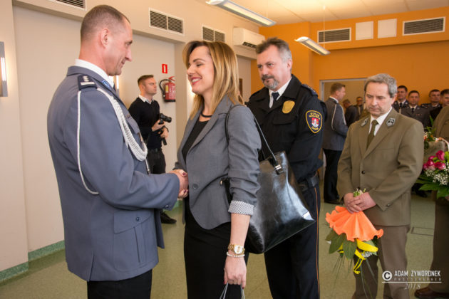 Wraz z komendantem A. Kamińskim na emeryturę odchodzi również podinspektor Sylwia Woroniec, która przez wiele lat pełniła funkcję oficera prasowego. Od 1 lutego zastępuje ją sierżant Aleksandra Jaszczuk. Podczas uroczystego pożegnania burmistrza Daniela Marchewkę reprezentowała Monika Wojtysiak. Obojgu serdecznie dziękujemy za bardzo dobrą współpracę. Życzymy szczęścia i wielu ciekawych, nowych wyzwań.