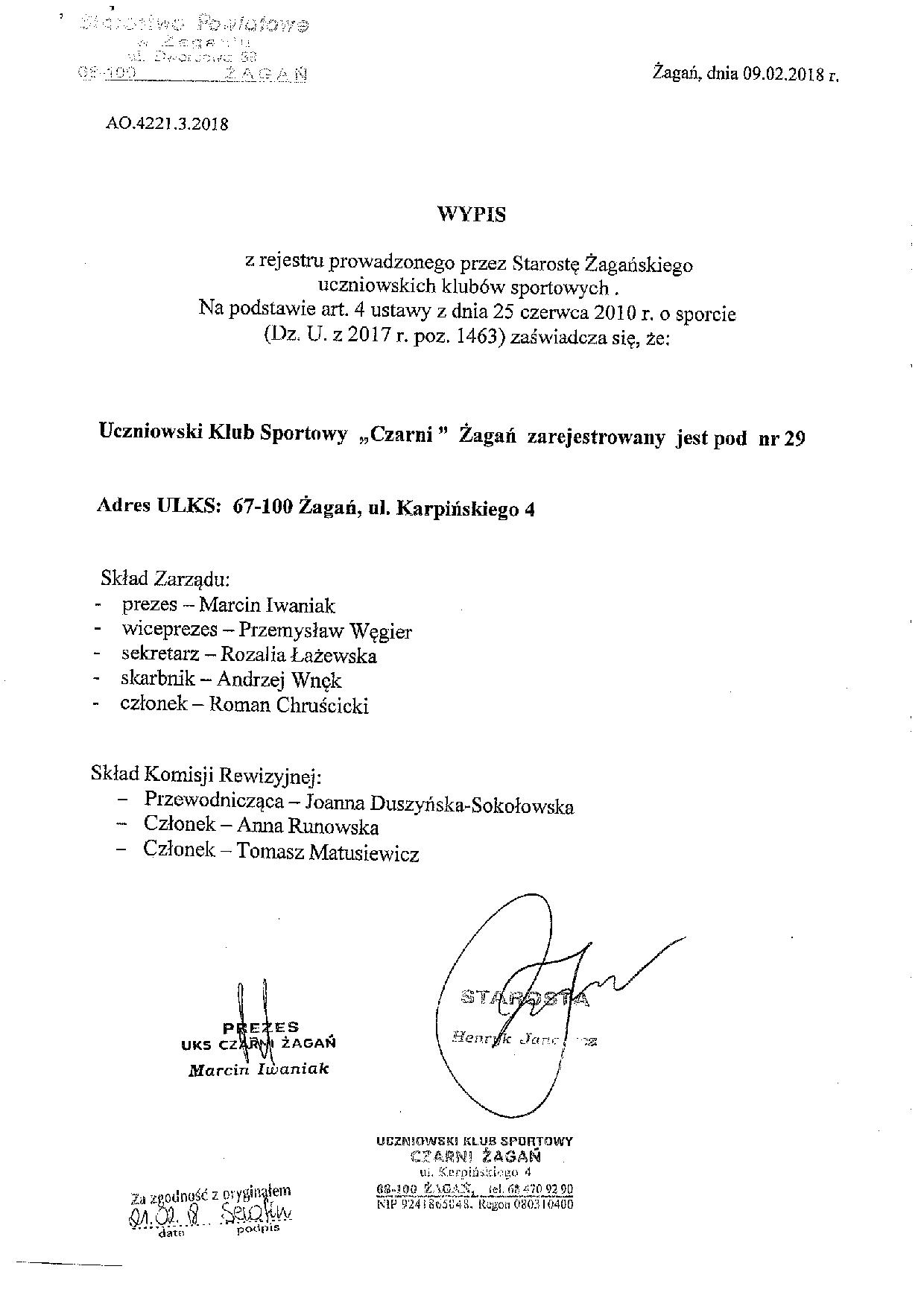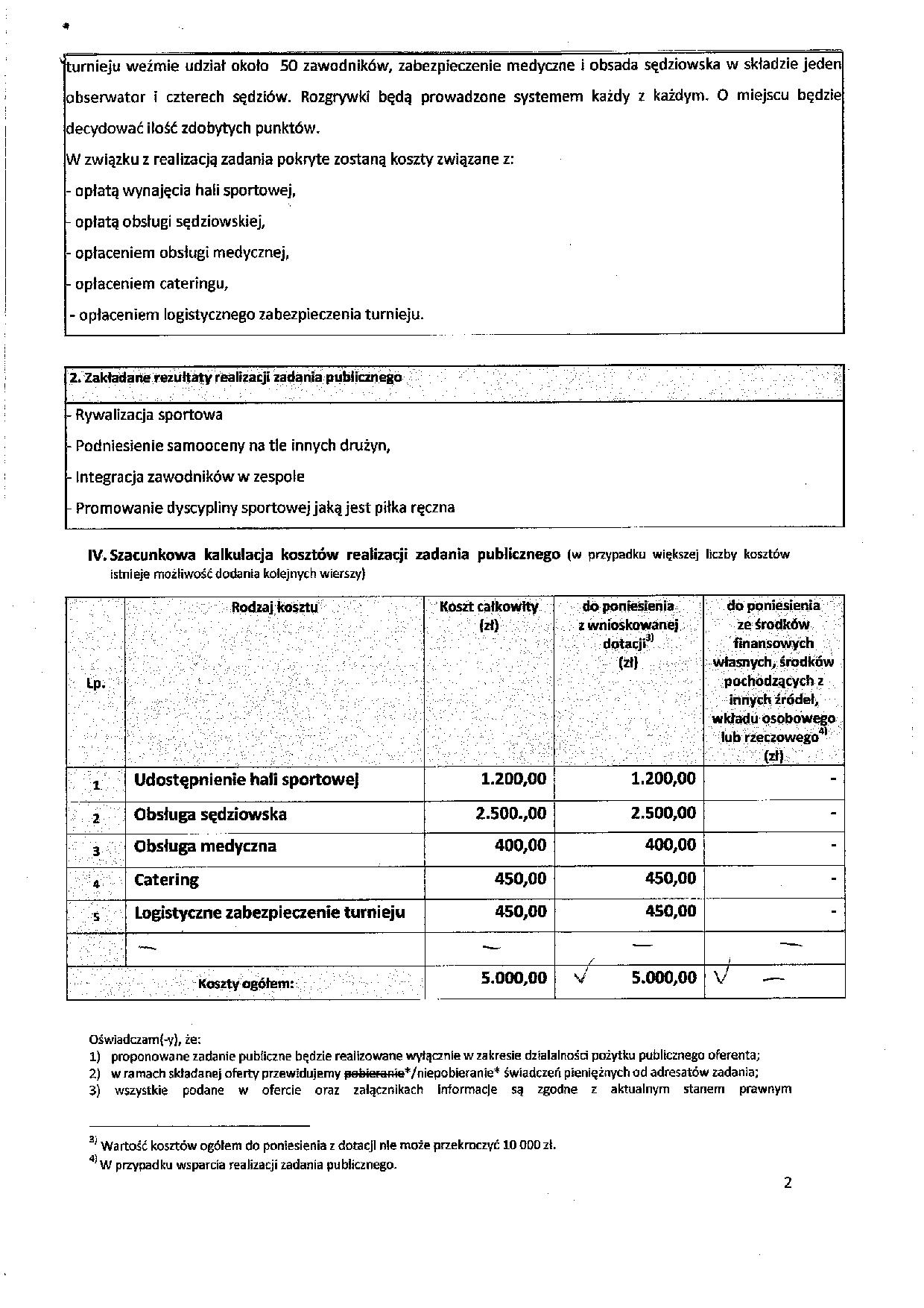 Informujemy, iż 23 marca 2018 r. do Urzędu Miasta Żagań wpłynęła oferta na realizację zadania publicznego pn. „Organizacja turnieju piłki ręcznej dla młodzieży”, złożona przez Uczniowski Klub Sportowy „CZARNI” Żagań z siedzibą przy ul. Karpińskiego 4, 68-100 Żagań, na kwotę 5 000,00 zł (słownie: pięć tysięcy złotych) brutto.