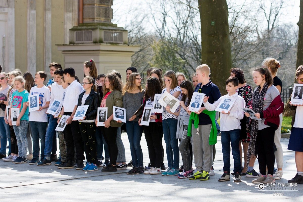 Burmistrz podziękował uczniom żagańskich szkół, którzy stanęli na placu, niosąc zdjęcia ofiar katastrofy. – Zapamiętajcie osoby, które zginęły – zaznaczył. – To byli bardzo wartościowi i godni szacunku ludzie.