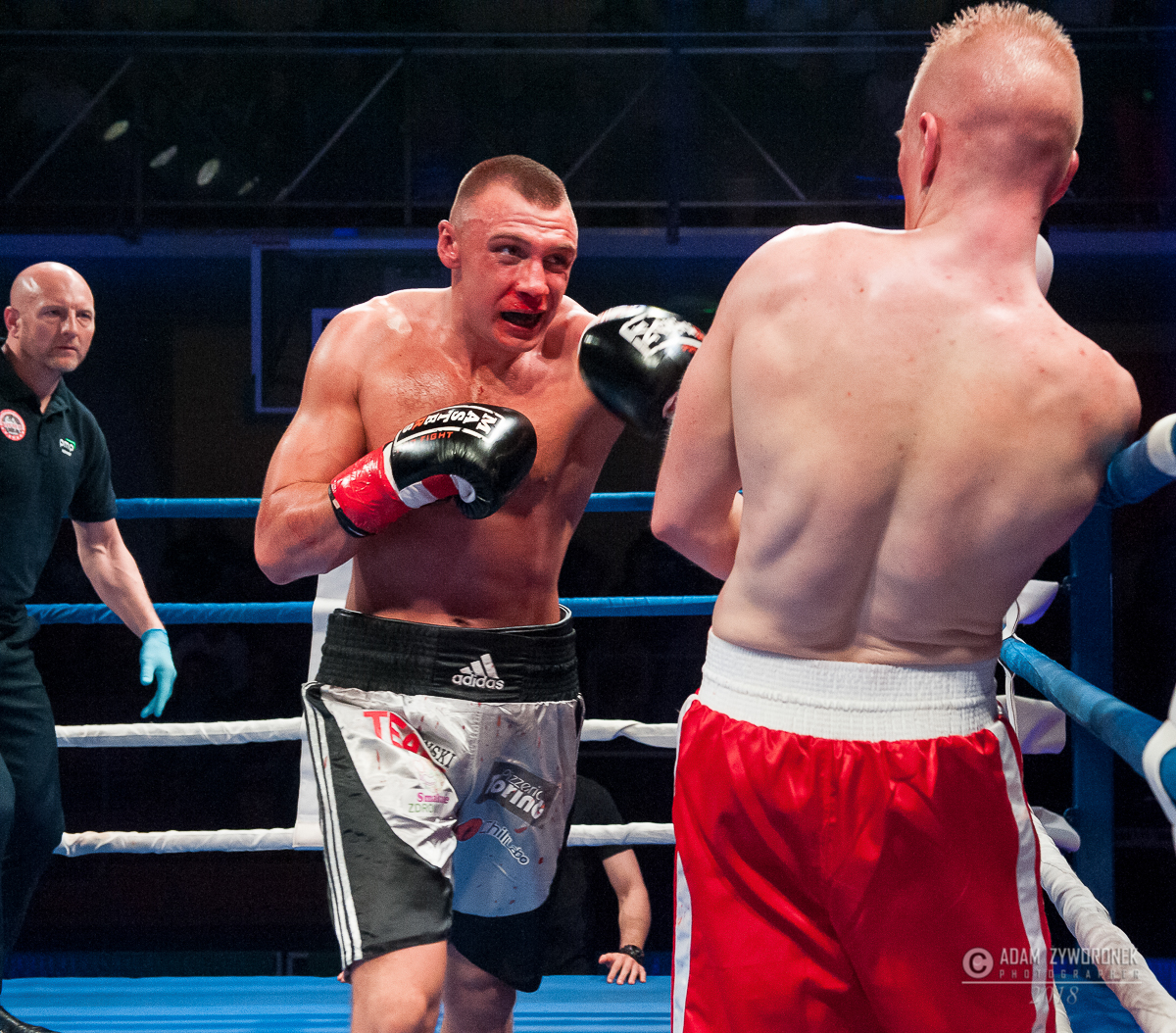 Imprezę otworzył pokaz umiejętności najmłodszych wychowanków P. Malinowskiego, a także występ raperów. Pierwszą, bardzo dramatyczną walkę stoczył Marcin Kujda z Maliowski Team z dolnoślązakiem Karolem Welterem w wadze 75 kg. Nasz zawodnik już na początku walki otrzymał potężny cios w noc i zalał się krwią. Mimo kontuzji kontynuował pojedynek, chociaż było widać, że oddychanie sprawia mu ogromną trudność. Mimo waleczności i sile woli minimalnie uległ K. Welterowi. Jako drugi walkę stoczył Mateusz Tratkiewicz z Malinowski Team z Pawłem Łozyniakiem z klubu Bokser Kożuchów. Obaj walczyli w wadze powyżej 91 kg. Mateusz ma 190 cm wzrostu, Paweł 180 cm. Mimo kontuzji nogi nasz zawodnik wygrał 3:0 z lepszym od siebie Łozyniakiem.
