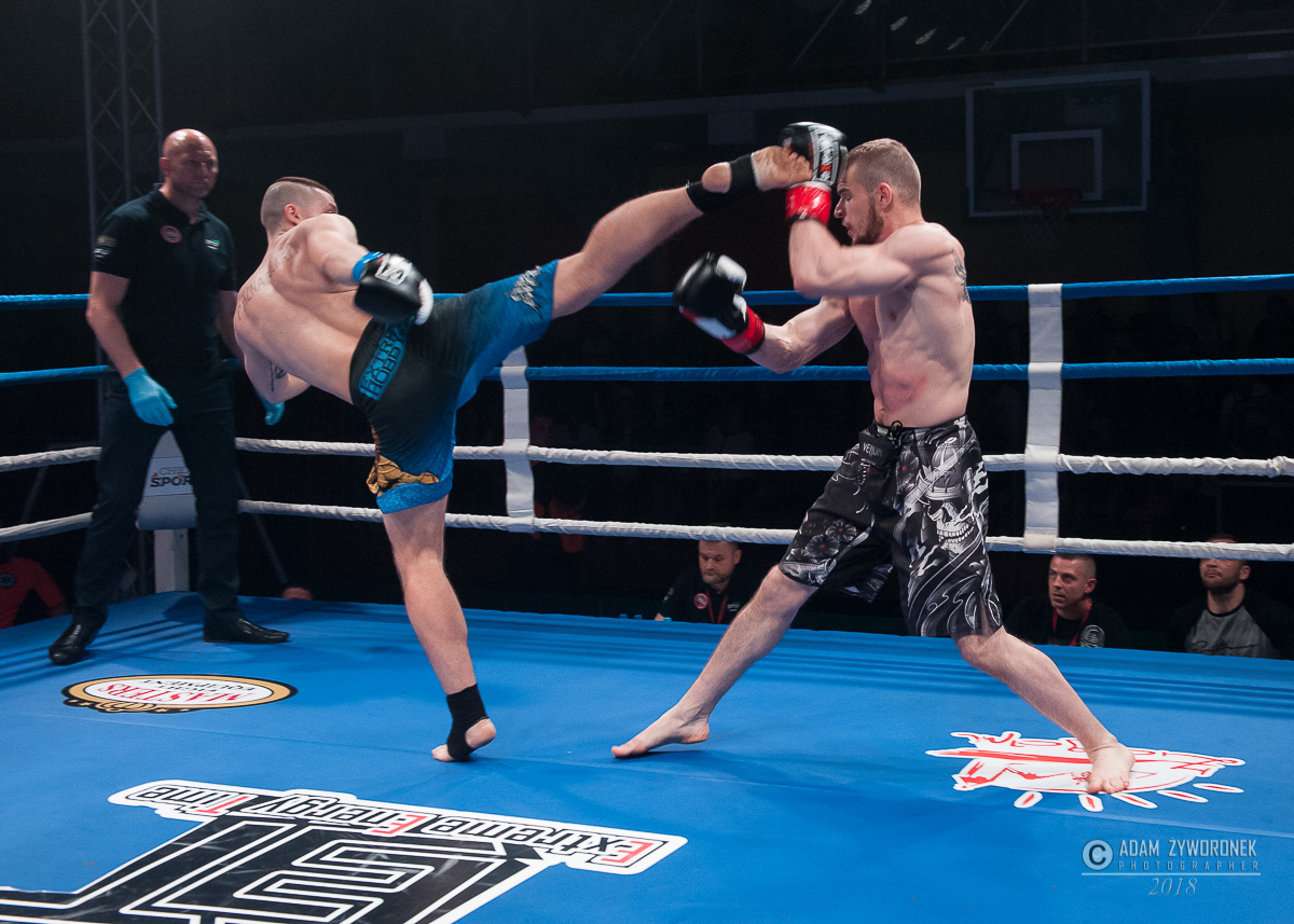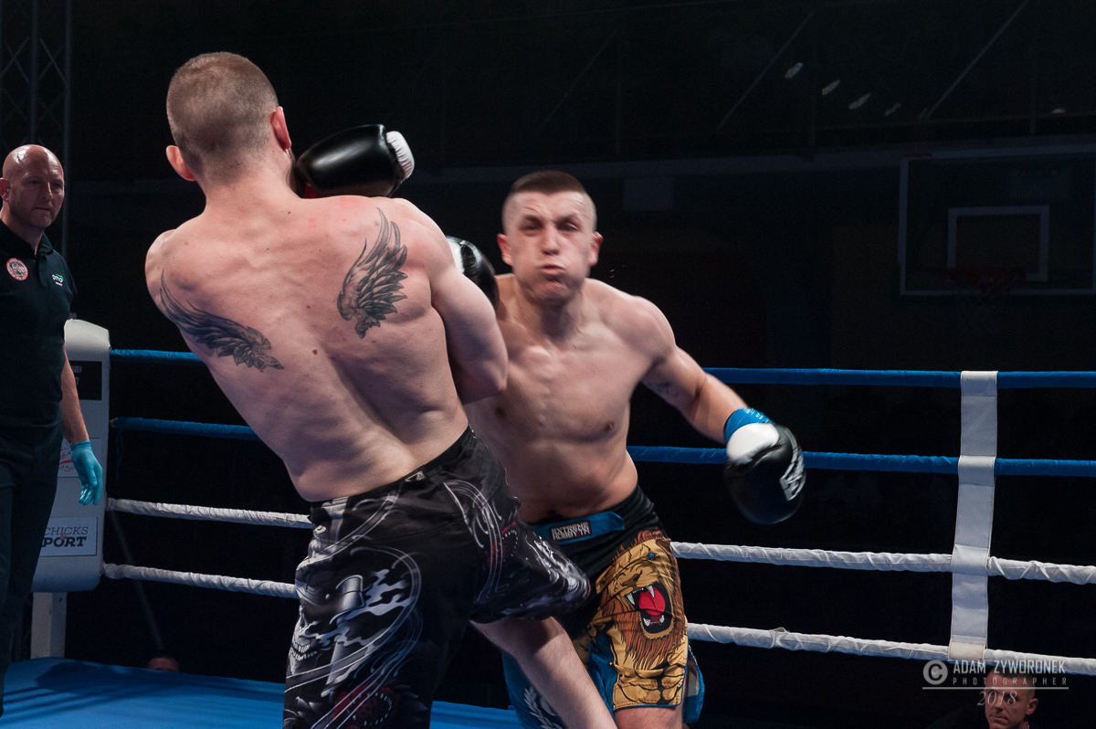 Jedną z gwiazd gali był Patryk Kimula z Malinowski Team. – Jestem dobrze przygotowany i spokojny – powiedział nam w szatni przed walką. – Zacząłem trenować sporty walki dosyć późno, bo dopiero w wieku 19 lat, ale od razu z sukcesami. Już po czterech miesiącach wziąłem udział w imprezie walkowej i wygrałem. Dzisiaj mogę powiedzieć, że trenuję od pięciu lat. Sport zmienił całe moje życie, które jest podporządkowane samodyscyplinie.