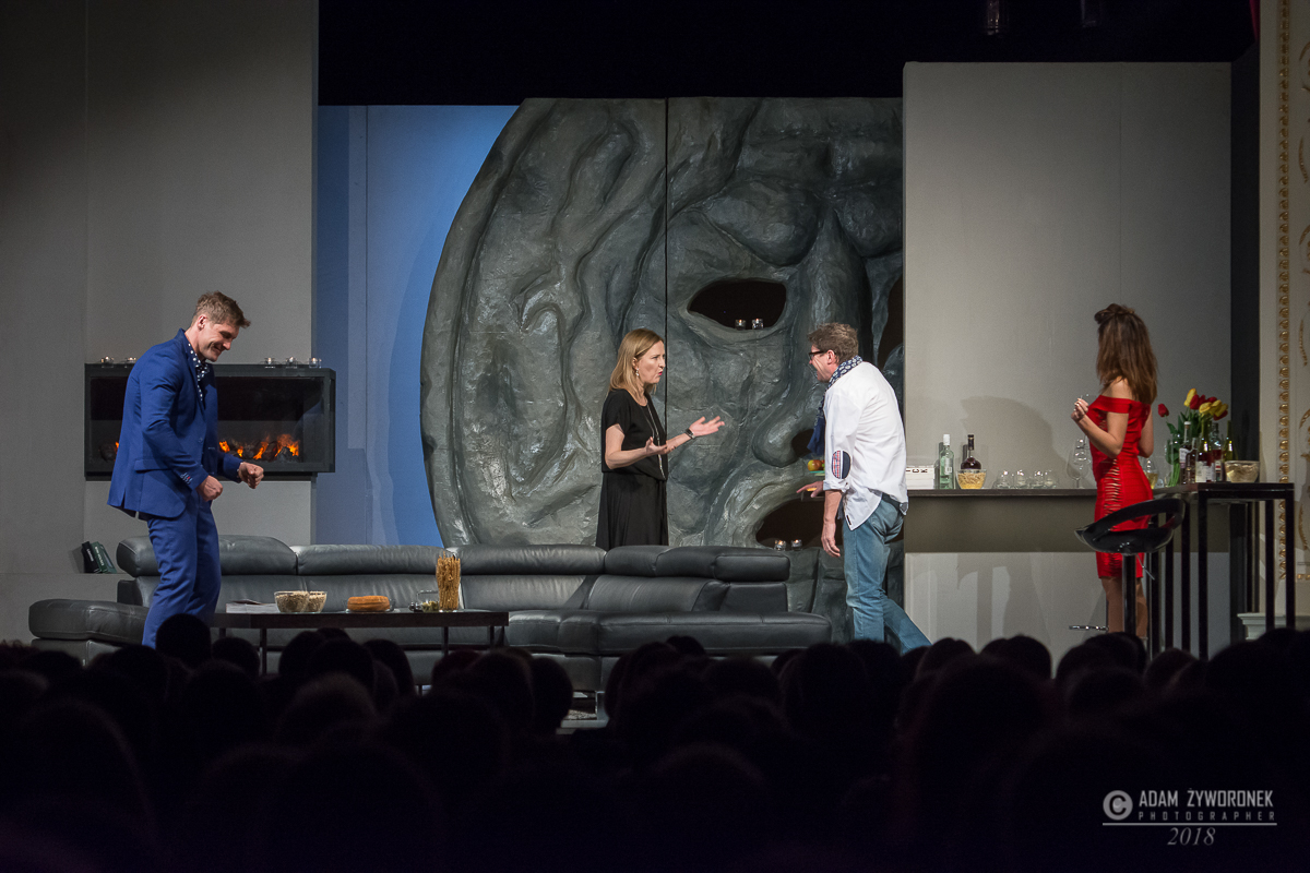 Reżyserem i aktorem spektaklu „Kłamstwo” był Wojciech Malajkat, którego doskonała, pełna niuansów gra zdominowała całe przedstawienie. Partnerowali mu Izabela Kuna, Mikołaj Roznerski i Adriana Kalska. Grali dwie pary małżeńskie, dwie pary przyjaciół, dwie pary kochanków, rozbawiając widownię, która co chwilę wybuchała śmiechem.
