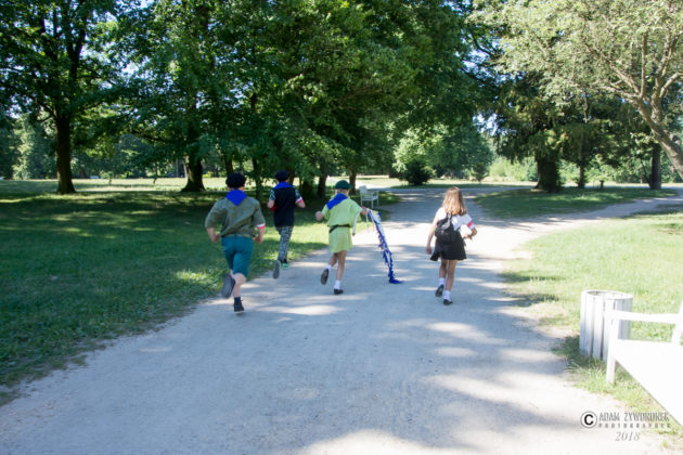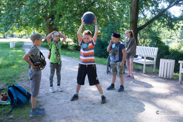 Dzieci doskonale bawiły się w parku podczas gry terenowej.