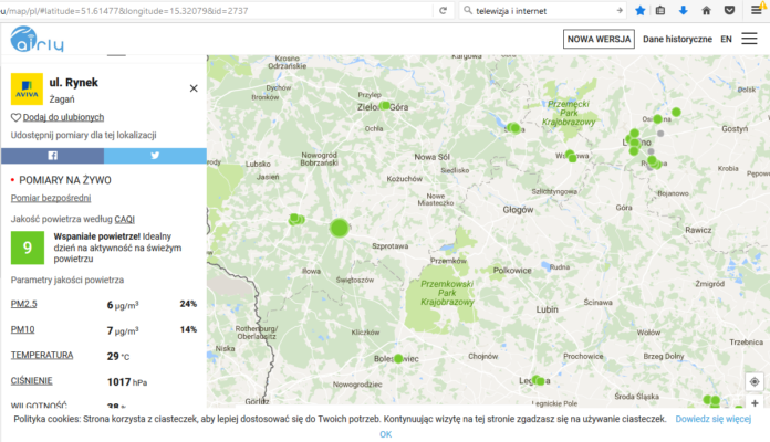 Możemy codziennie monitorować stan powietrza w Żaganiu. Pomiary w czasie rzeczywistym są dostępne w internecie.